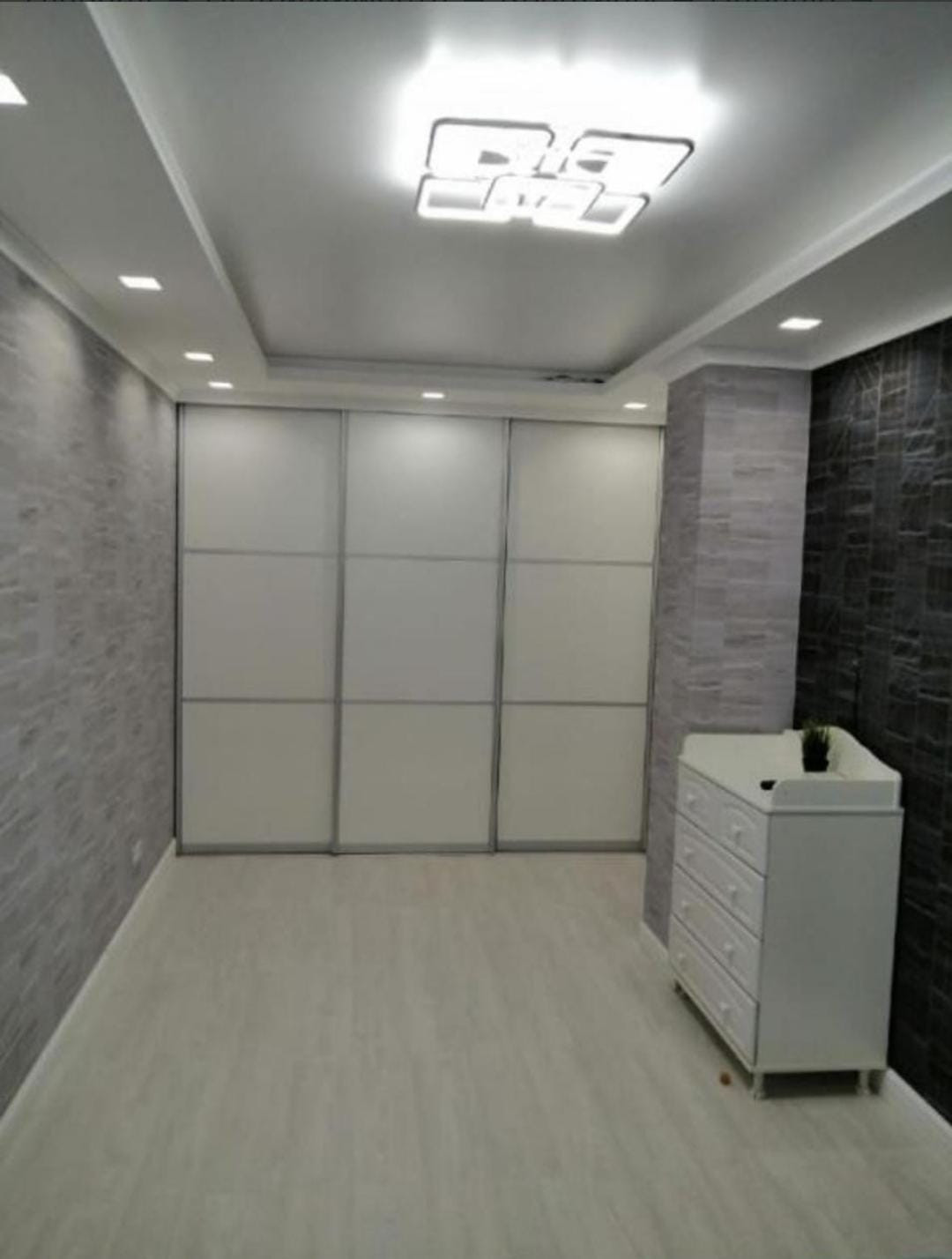 В комнатах уложен ламинат, в кухне и коридоре уложена плитка с установленным тёплым полом, встроенная кухонная мебель Blum на кухне встроенная кухонная техника: холодильник, посудомоечная машина, духовой шкаф, микроволновка, индукционная панель. Техника фирмы Bosch, также в квартире есть газ.