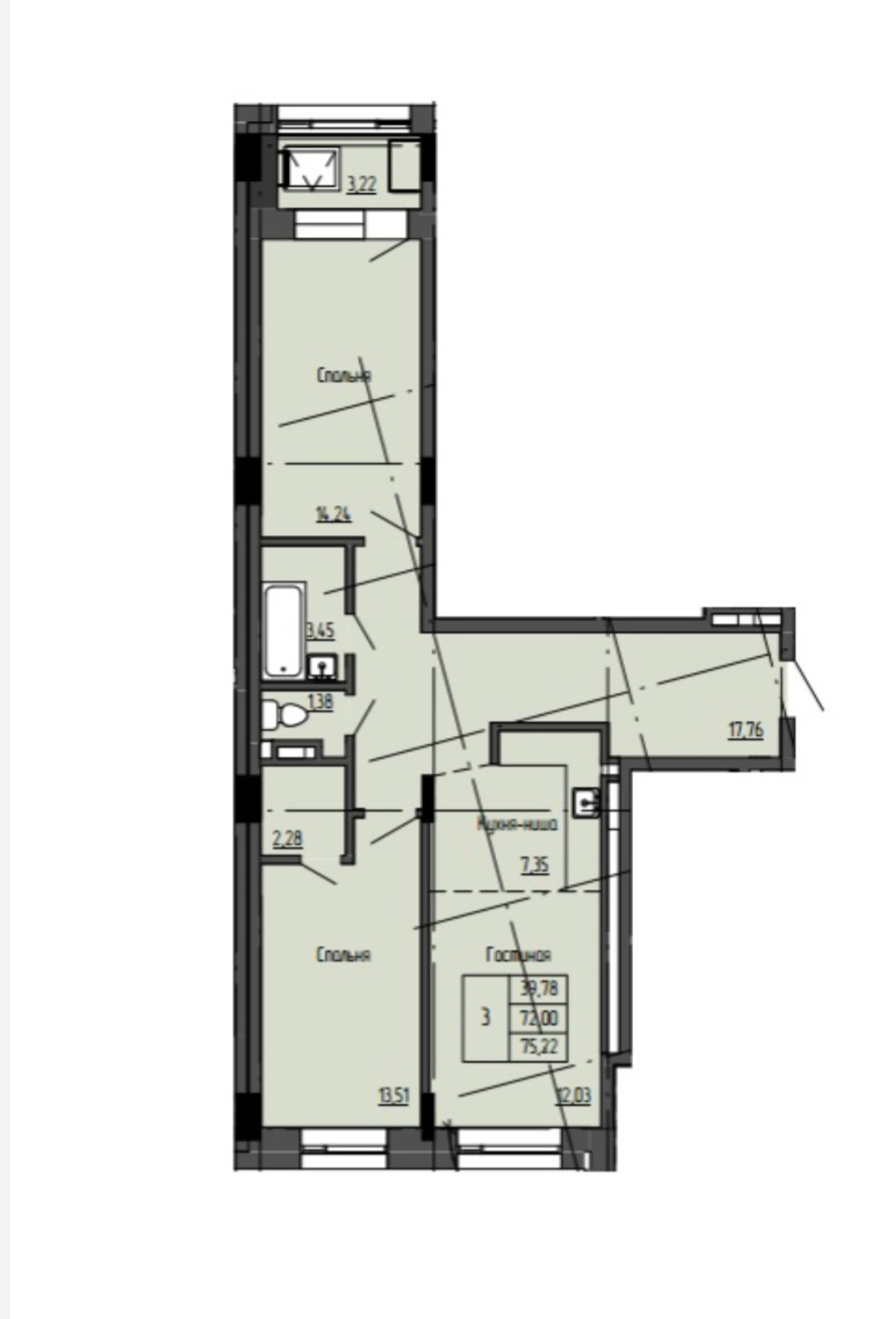 Общая площадь 75.26 м2
