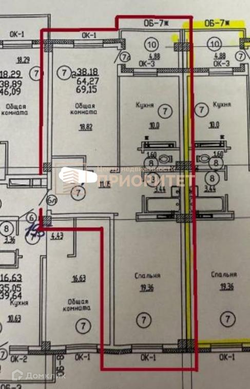 Общая площадь 65.1 м2