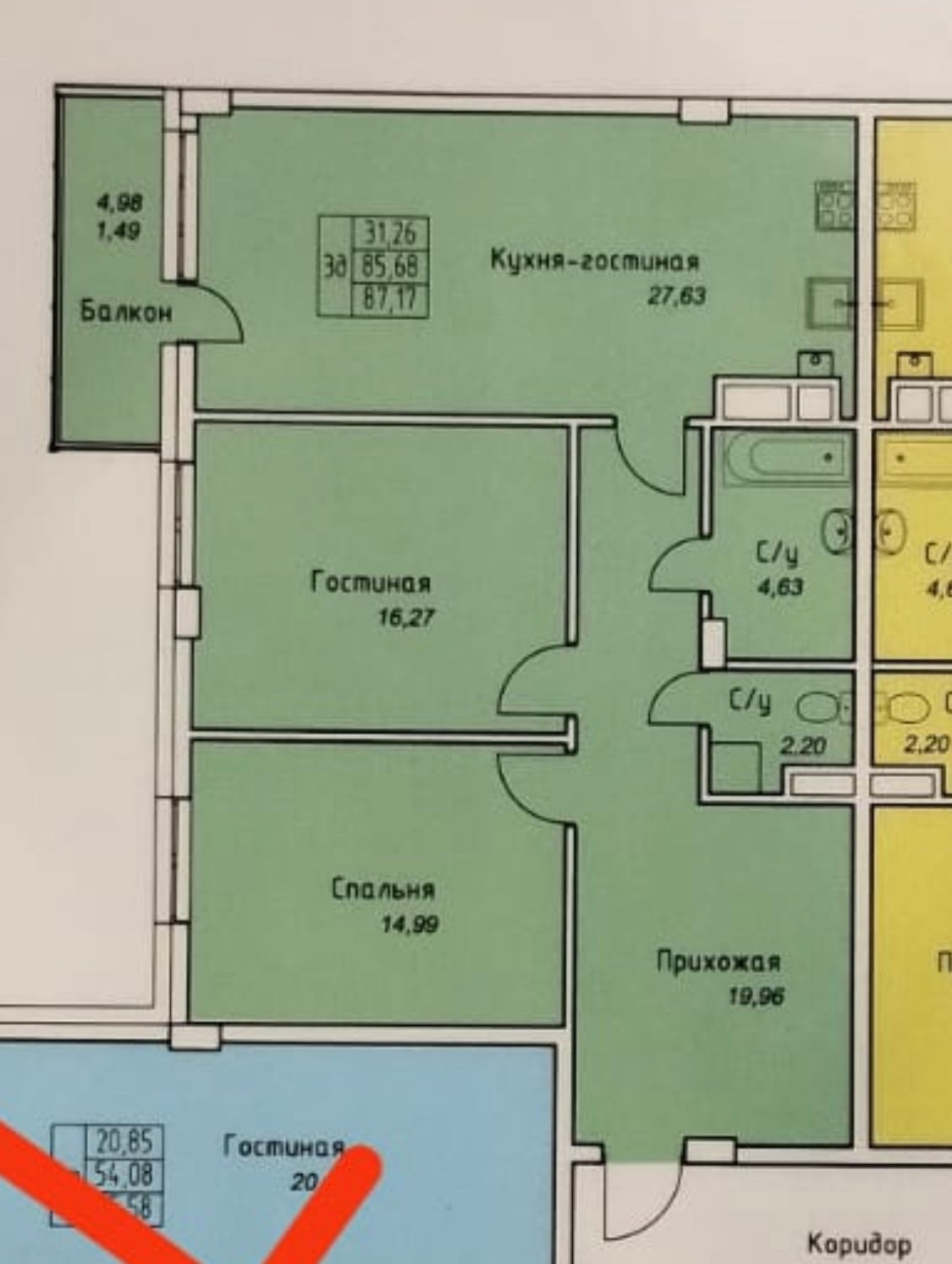 Общая площадь 87 м2