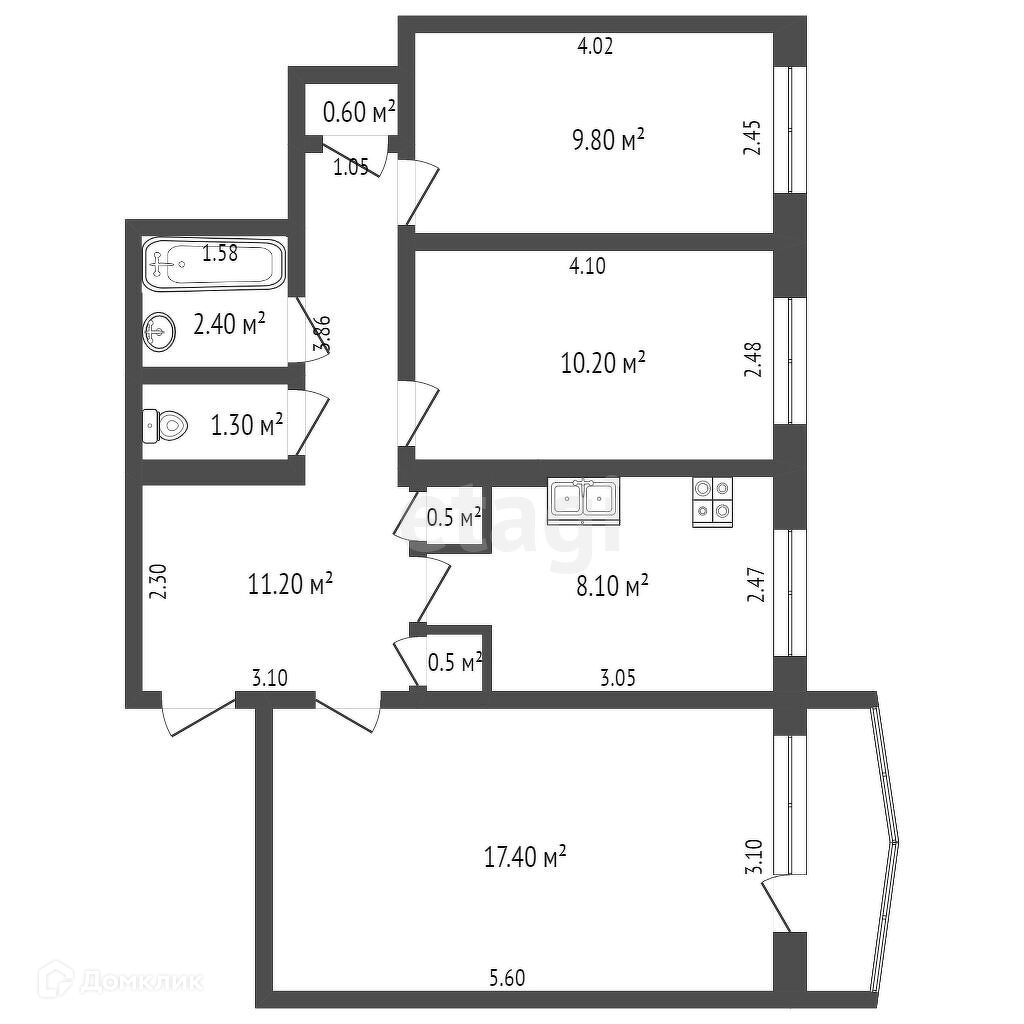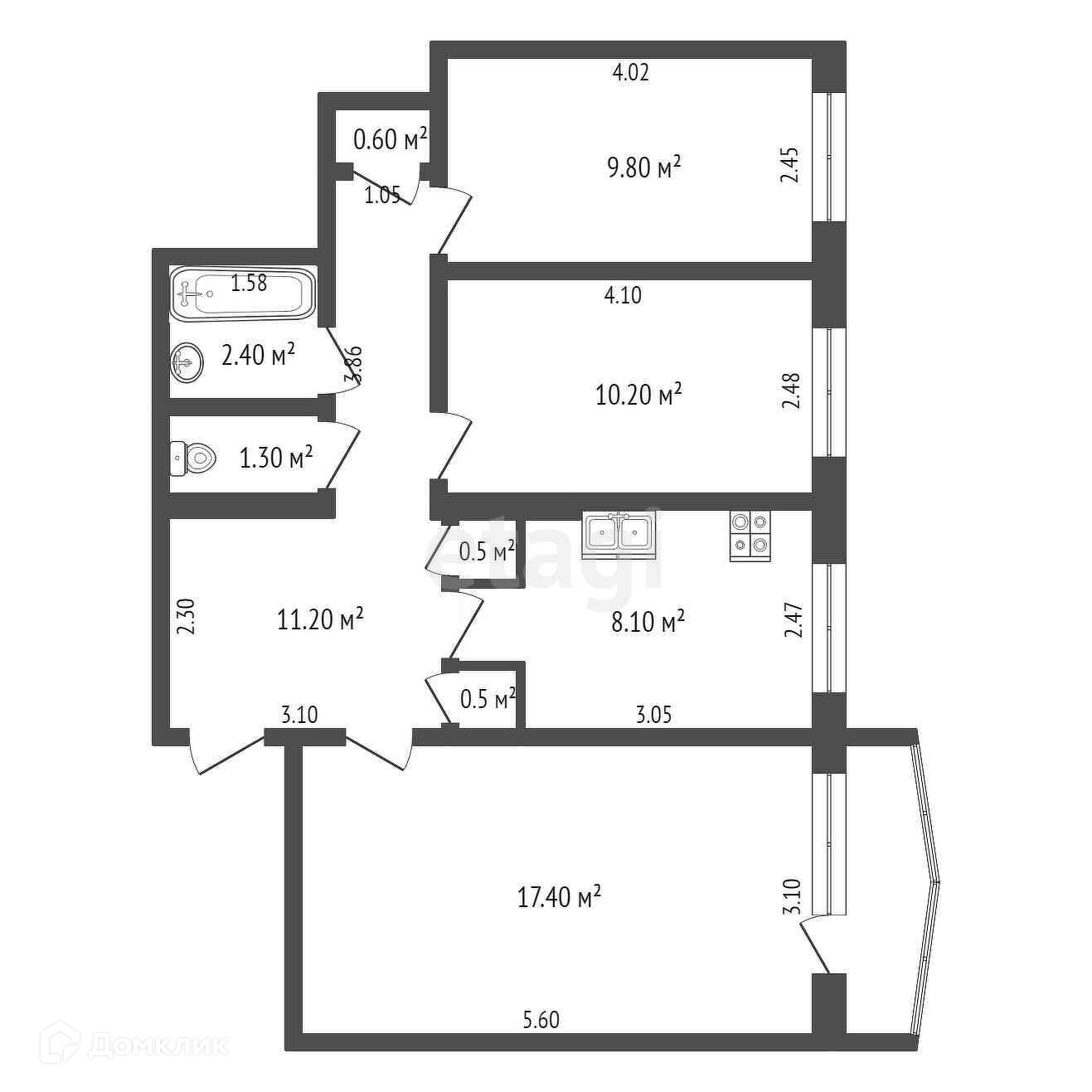 Общая площадь 62 м2