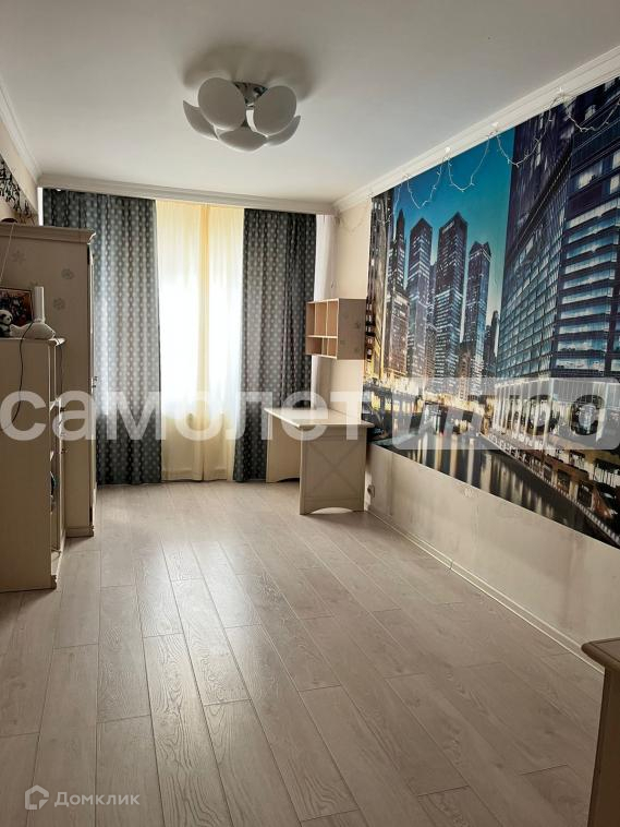 Остается: кухня - кухонный гарнитур, варочная панель; спальня - шкаф-купе, 2х спальная кровать, прикроватные тумбы, туалетный столик; детская - полки, шкаф, столик; ванная комната - гарнитура.