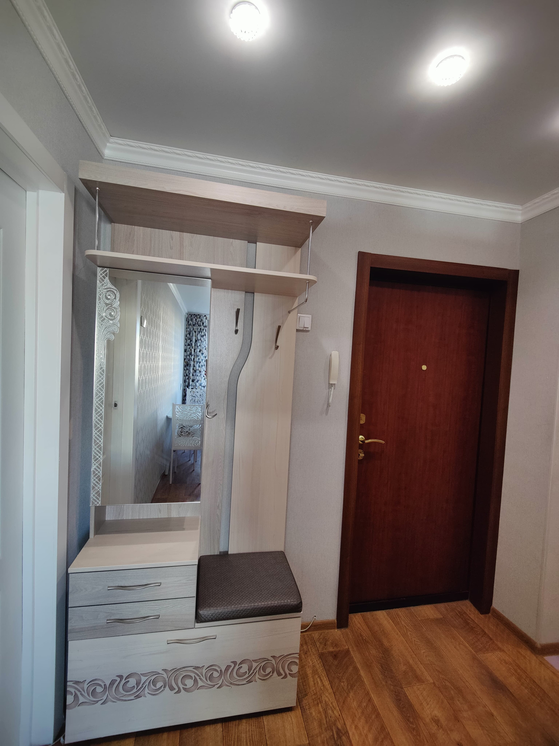 Жилая площадь составляет 17.4 квадратных метров, а кухня – 7.8 квадратных метров. Квартира имеет совмещённый санузел и балкон, откуда открывается вид на тихий двор. Здесь выполнен качественный евроремонт, что придаёт жилью особый шарм и комфорт.