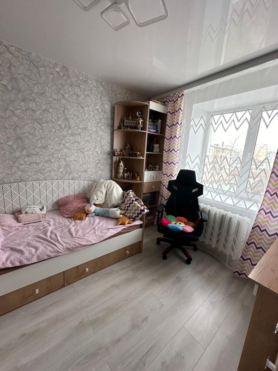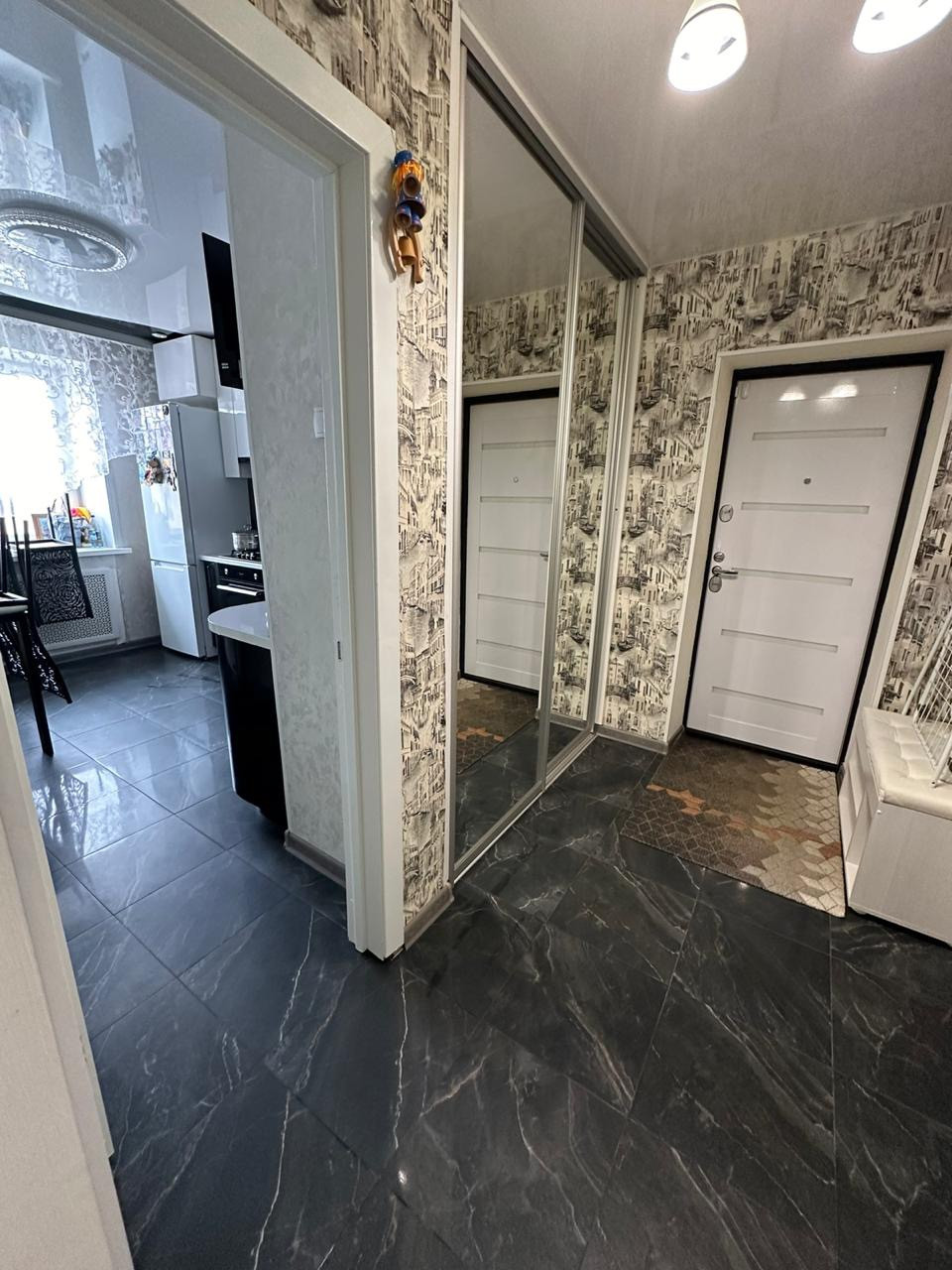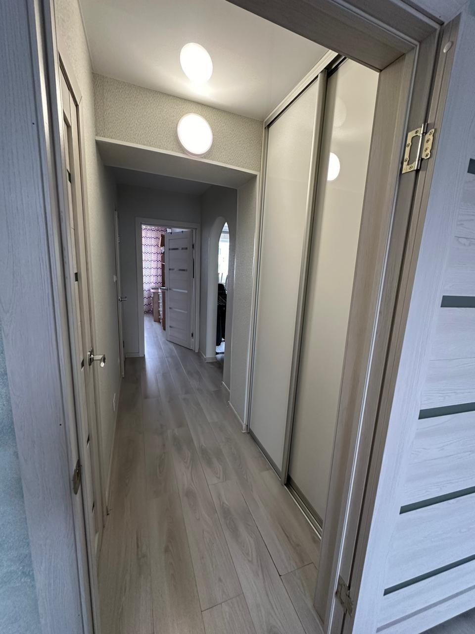 Во всех комнатах ламинат, кухня и прихожая керамогранит, евроремонт, натяжные потолки во всех комнатах, встроенный кухонный гарнитур, посудомоечная машина, гардеробная  встроенные шкафы купе - заезжай и живи  хороший ТОРГ новым хозяевам, с риелторами сотрудничаем)