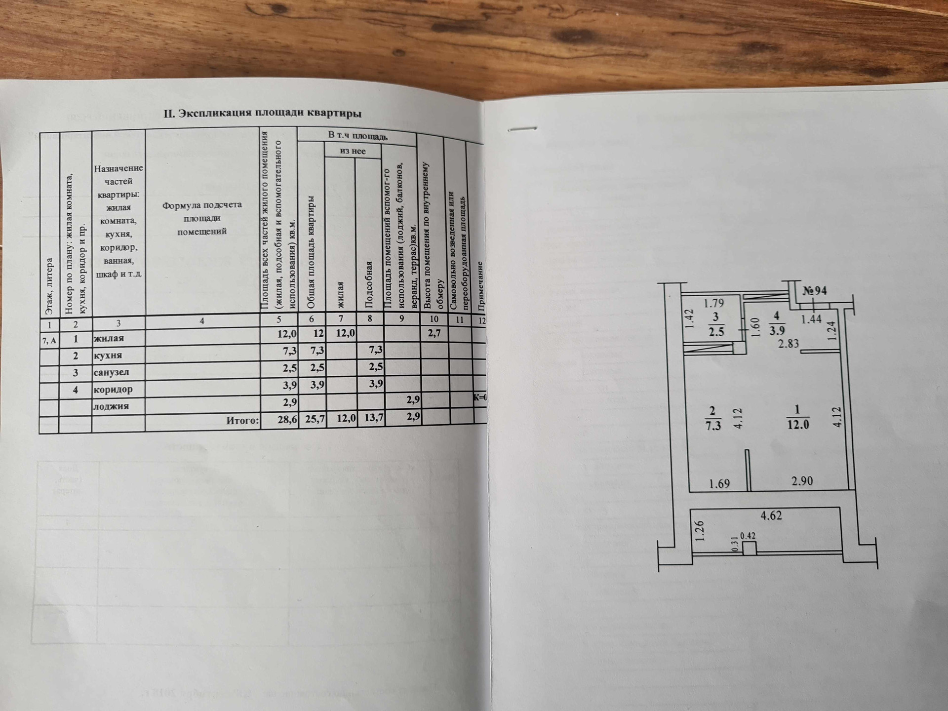 Общая площадь 25.7 м2