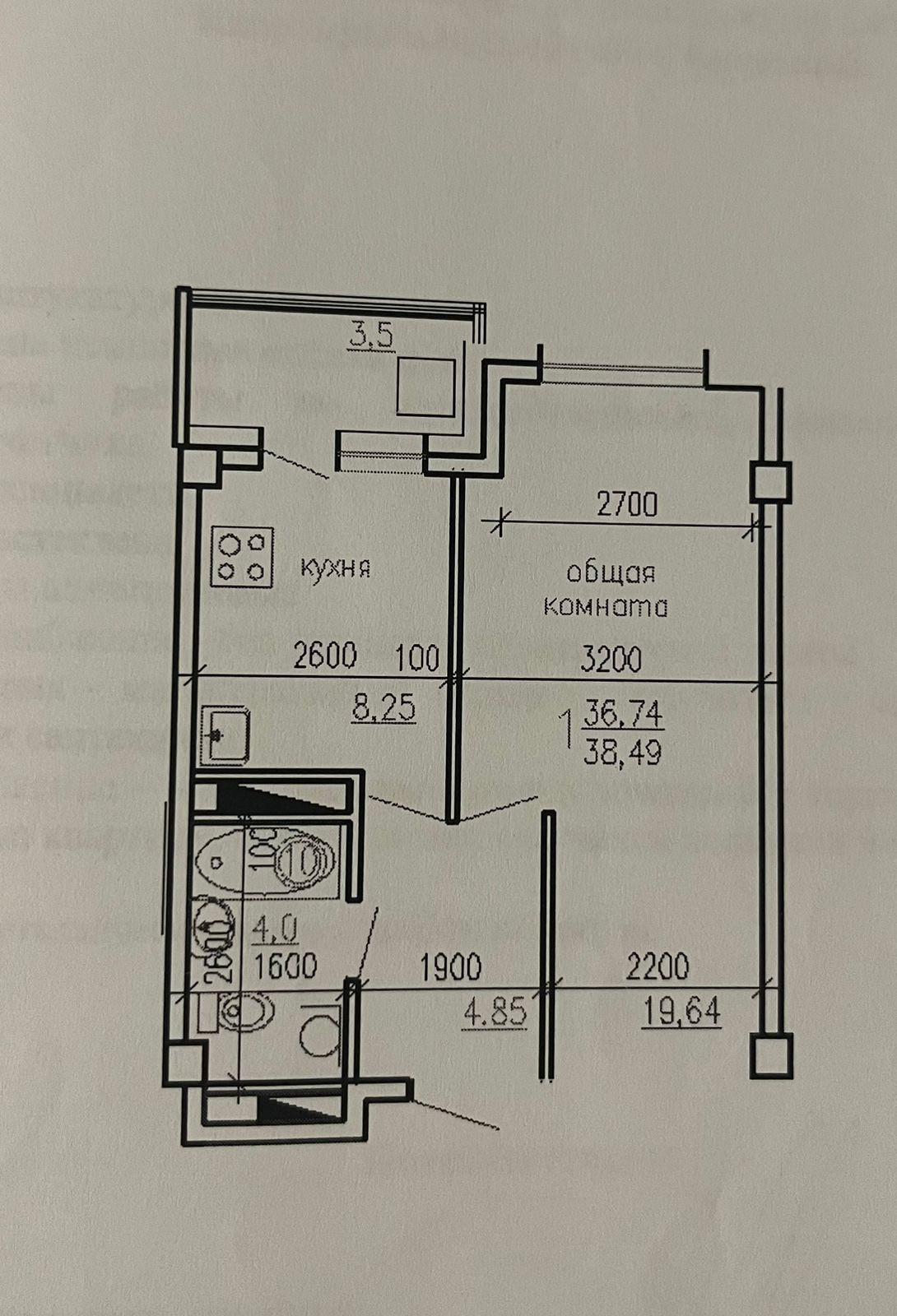 Общая площадь 37.1 м2