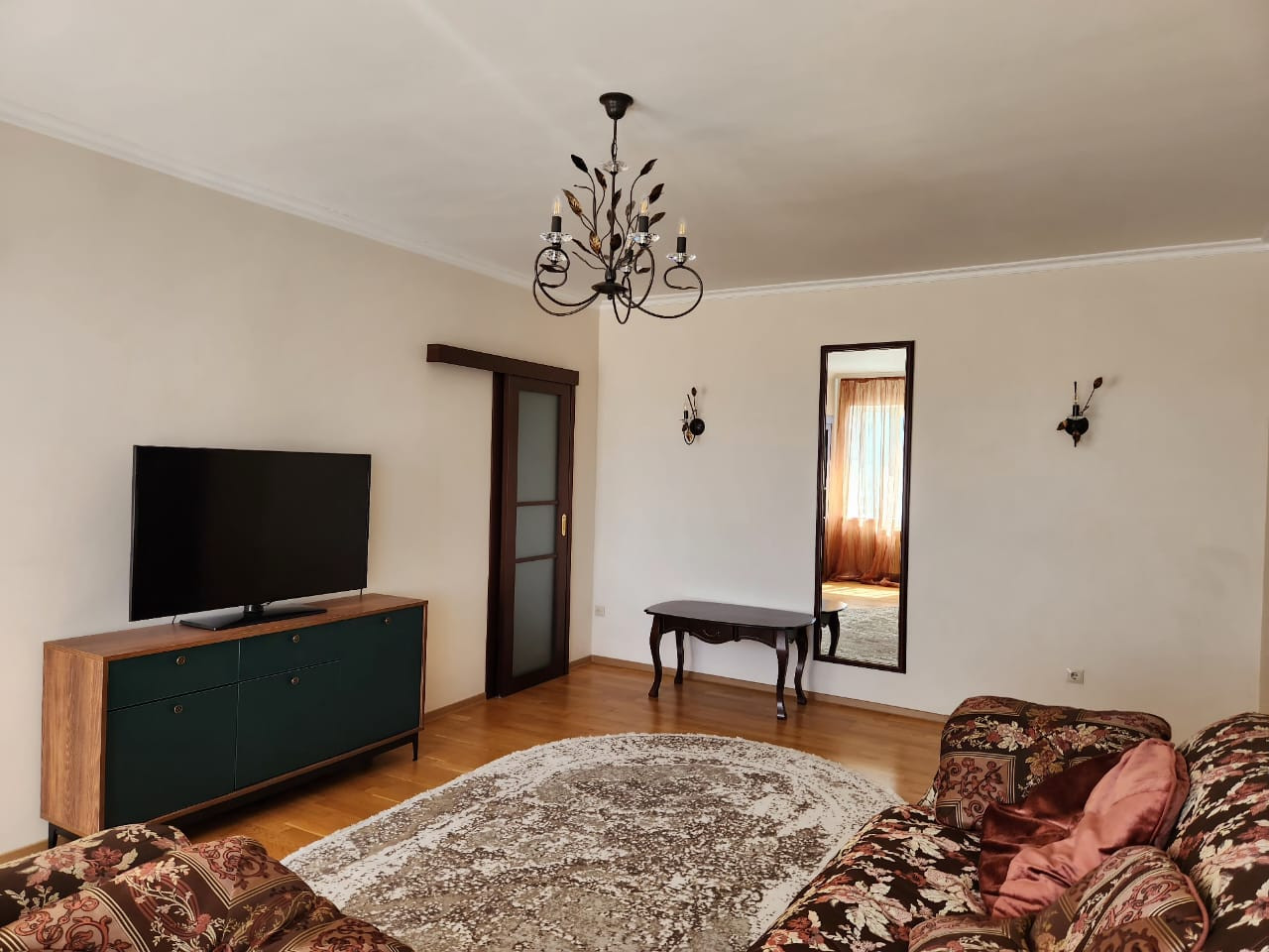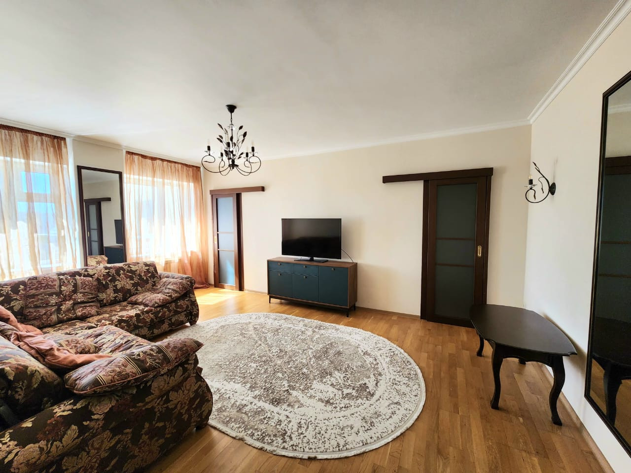 Квартира находится в районе Сахацирк, в самом лучшем районе нашего города! Квартира от первых собственников, выполнен ремонт в классическом стиле из качественных материалов по высоким экологическим стандартам - стены штукатурка и окраска, потолок в жилых комнатах окрашен, потолки натяжные  только в помещениях с мокрыми точками, пол - паркет и испанская  керамика. Двери - шпон, квартира не требует вложений. Окна выходят не на проезжую часть, а в тихий двор без пыли и шума. Из всех окон открывается красивый вид на городскую перспективу. Просторная кухня с выходом на застекленную лоджию, кухонный гарнитур новый  со встроенной техникой, также имеется посудомоечная машина, холодильник, СВЧ, тостер. Спальная комната правильной формы полностью обустроенная для жизни и большая гостиная площадью 31 кв.м. с гардеробной комнатой.