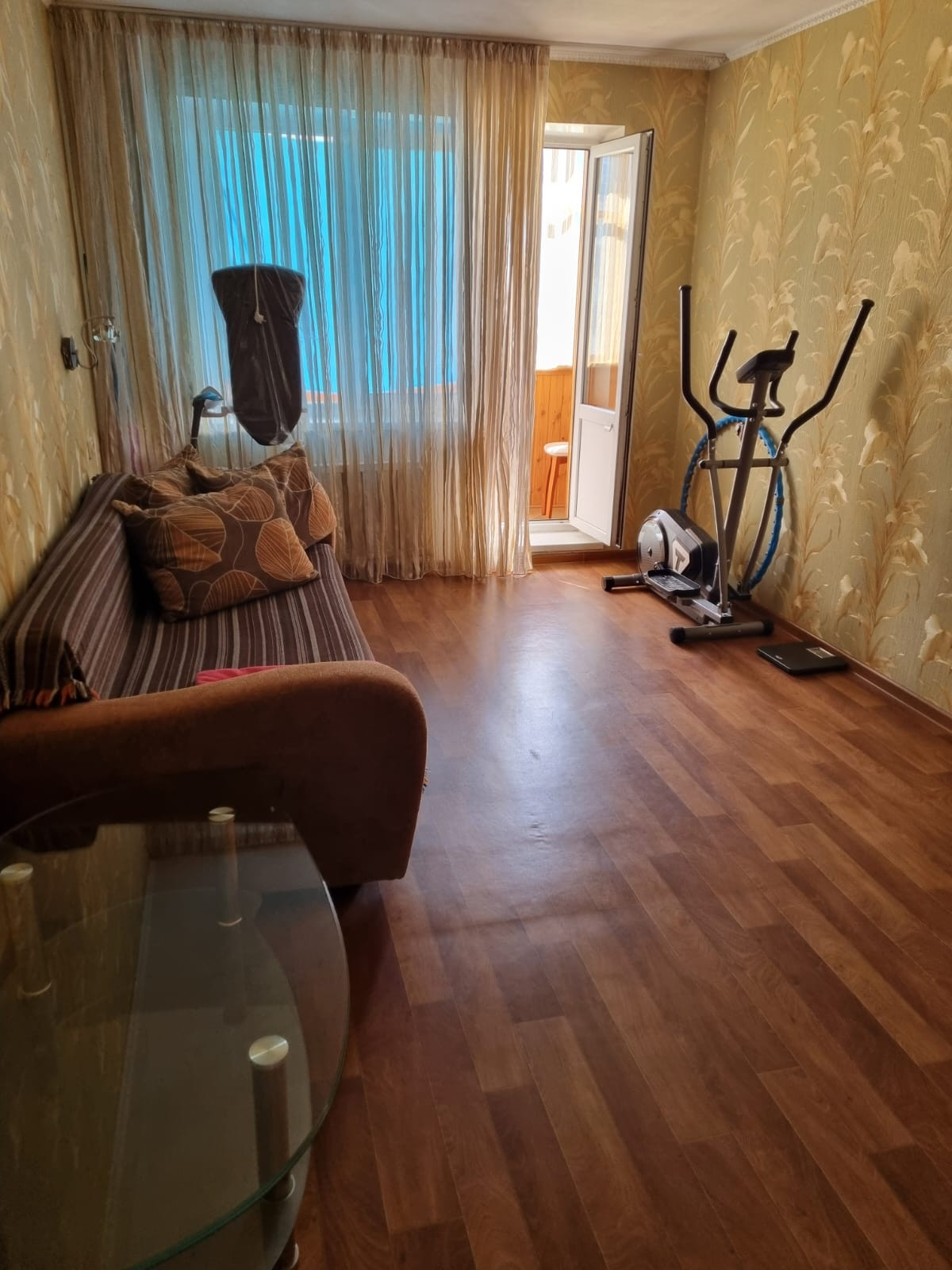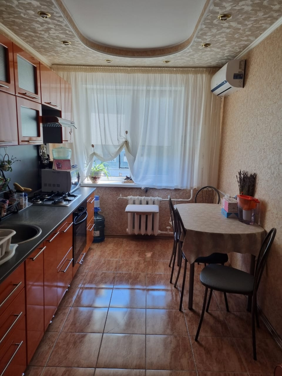 Продаётся 2-комнатная квартира, КПД,район авиапорта. Балкон застрелен, комнаты раздельные, санузел совмещённый. В квартире установлены встроенная мебель: прихожая в коридоре, кухонный гарнитур,  шкаф в спальне. Также установлены кондиционеры в спальне и  в кухне. Хорошая транспортная доступность, рядом расположены остановки автобусов: 2, 3, 4, 5, 14, 20, 41, 100, 102, 104, 105, 109. Рядом школы 28, 30, 38, детские сады, взрослая и детская поликлиника, спортивные комплексы Сулус и Стерх, множество магазинов в шаговой доступности. Остальная мебель и бытовая техника может быть оставлена по договорённости.