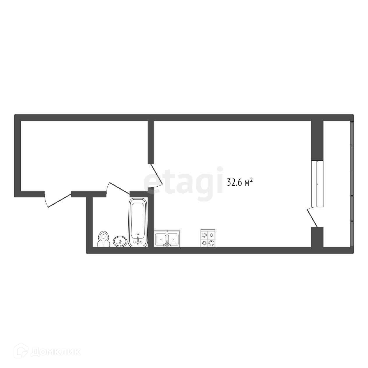 Общая площадь 32.6 м2