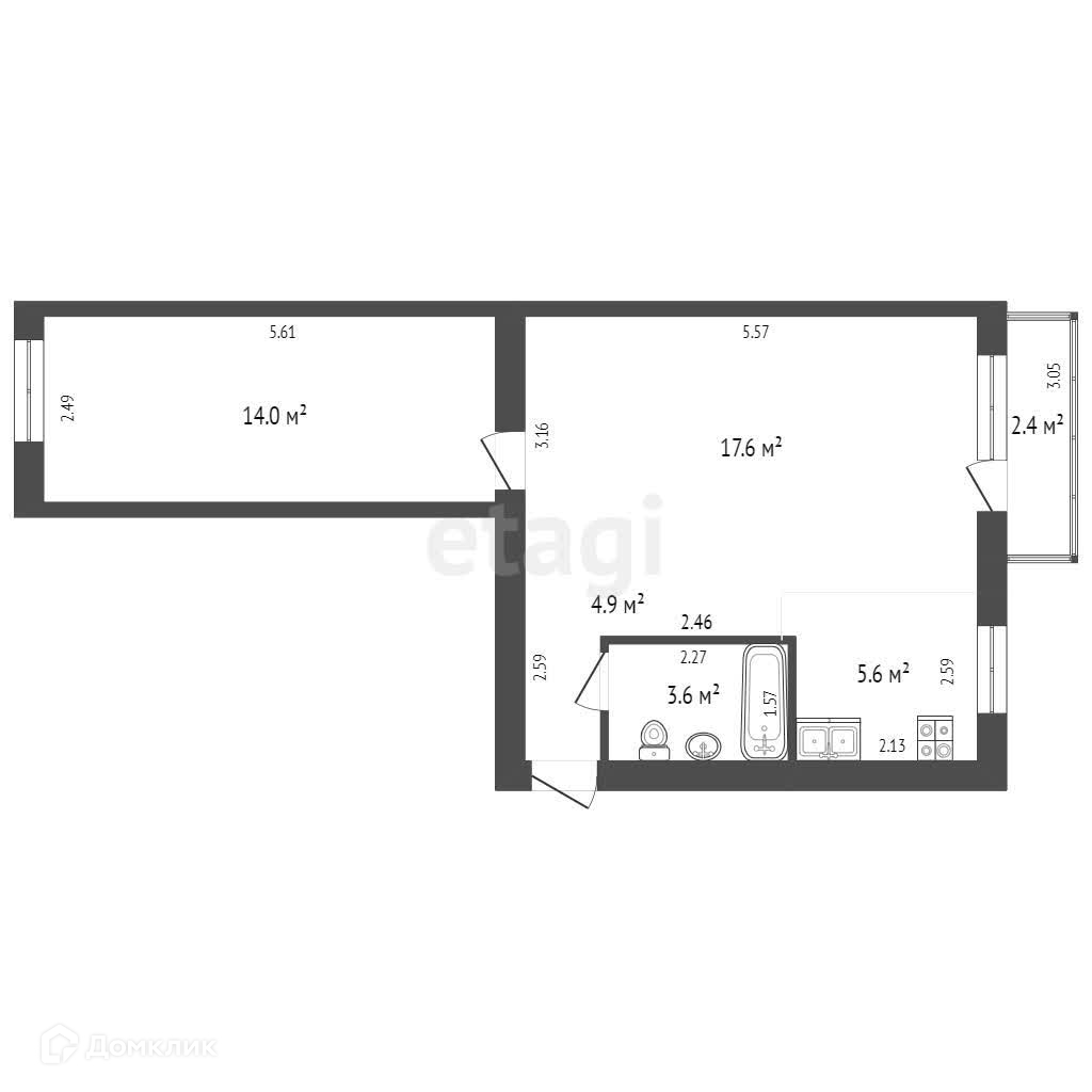 Площадь: 45.6 кв.м.