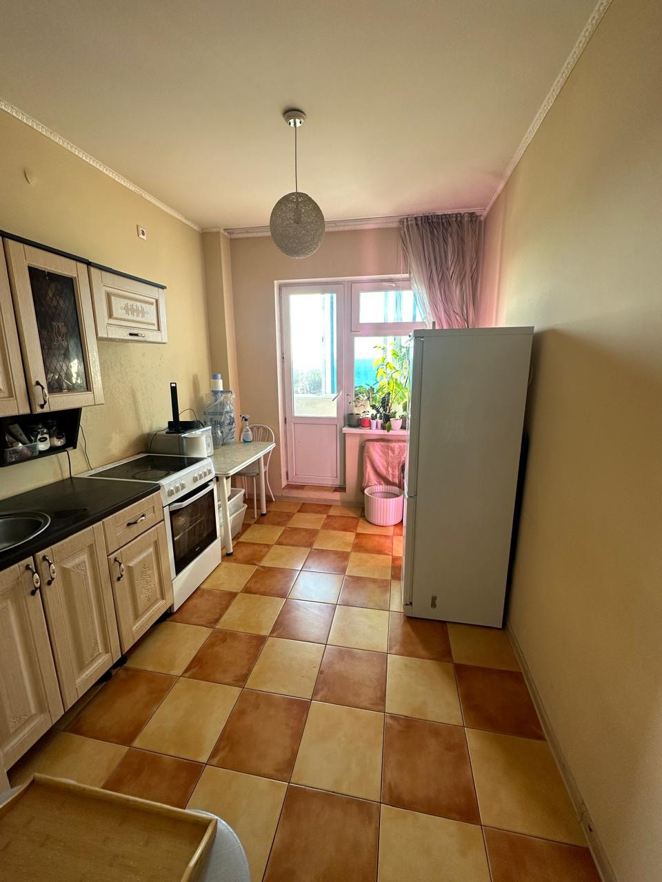 Удачная планировка, полы в прихожей и на кухне кафель, санузел совмещенный, ремонт косметический
