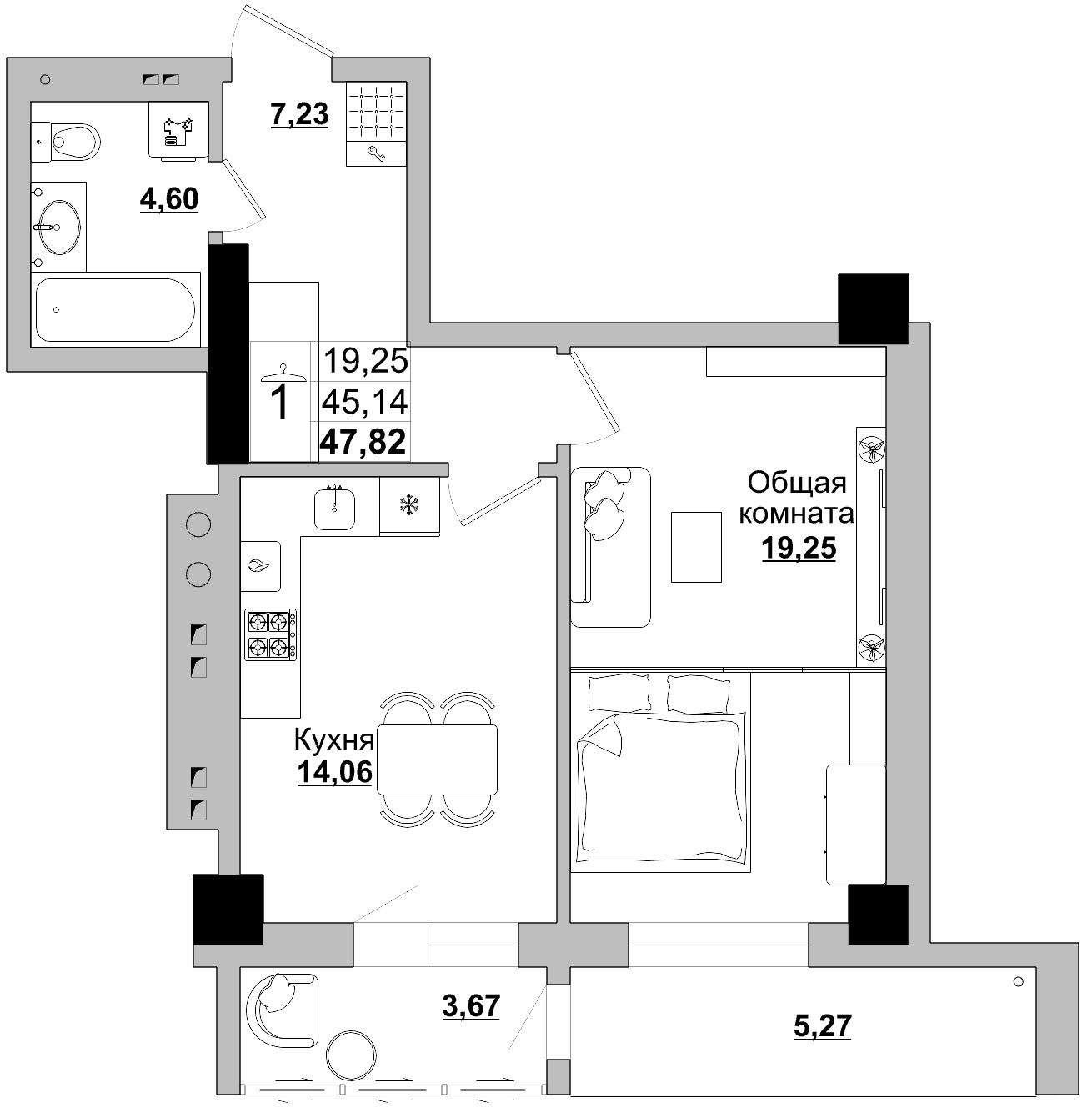 Общая площадь 48 м2