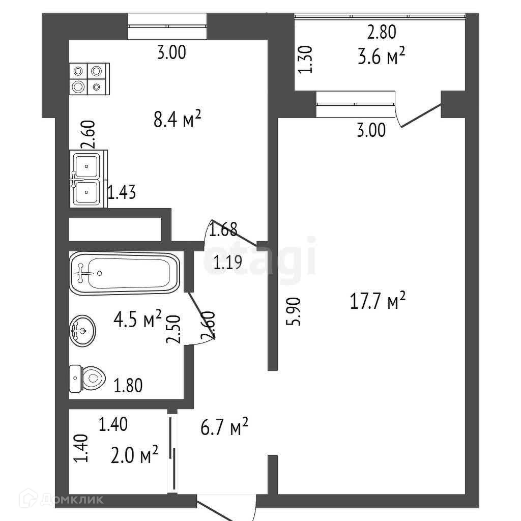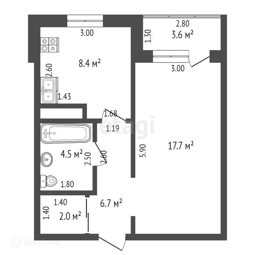 Балкон, лоджия 1 балкон