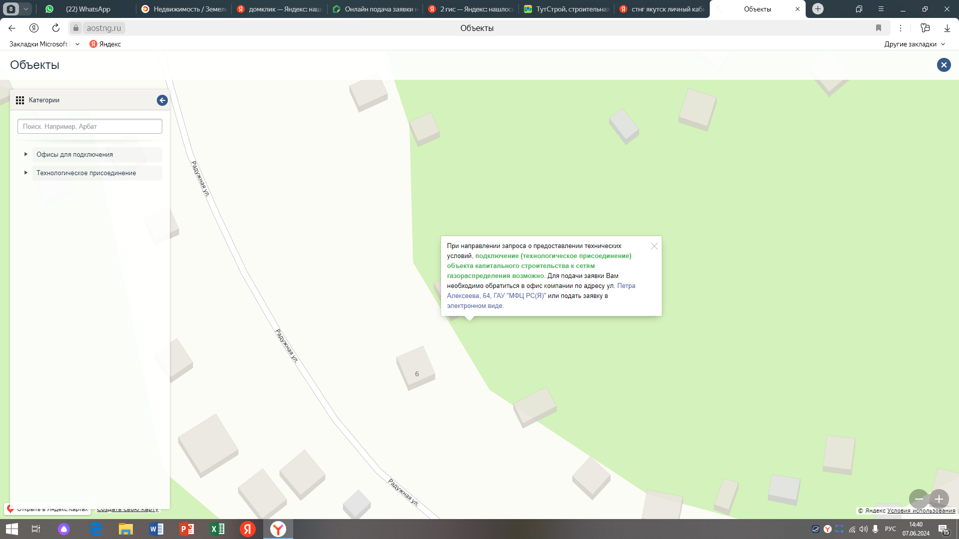 - ГАЗ: подключение (технологическое присоединение) объекта капитального строительства к сетям газораспределения возможно. Подаем заявление на техусловие