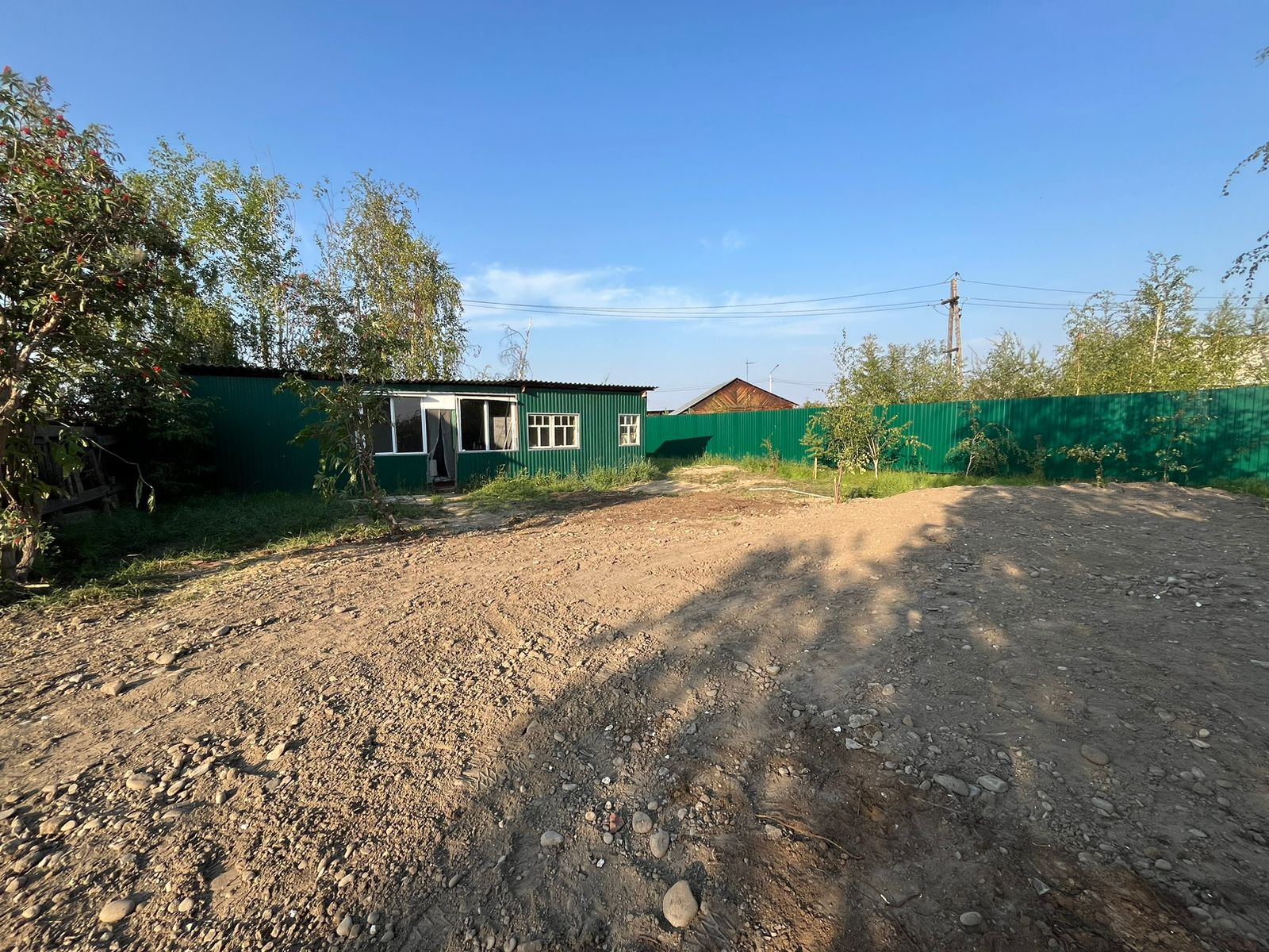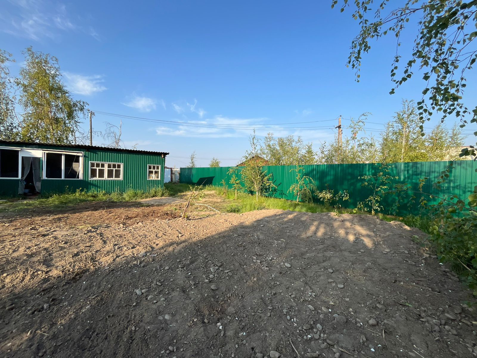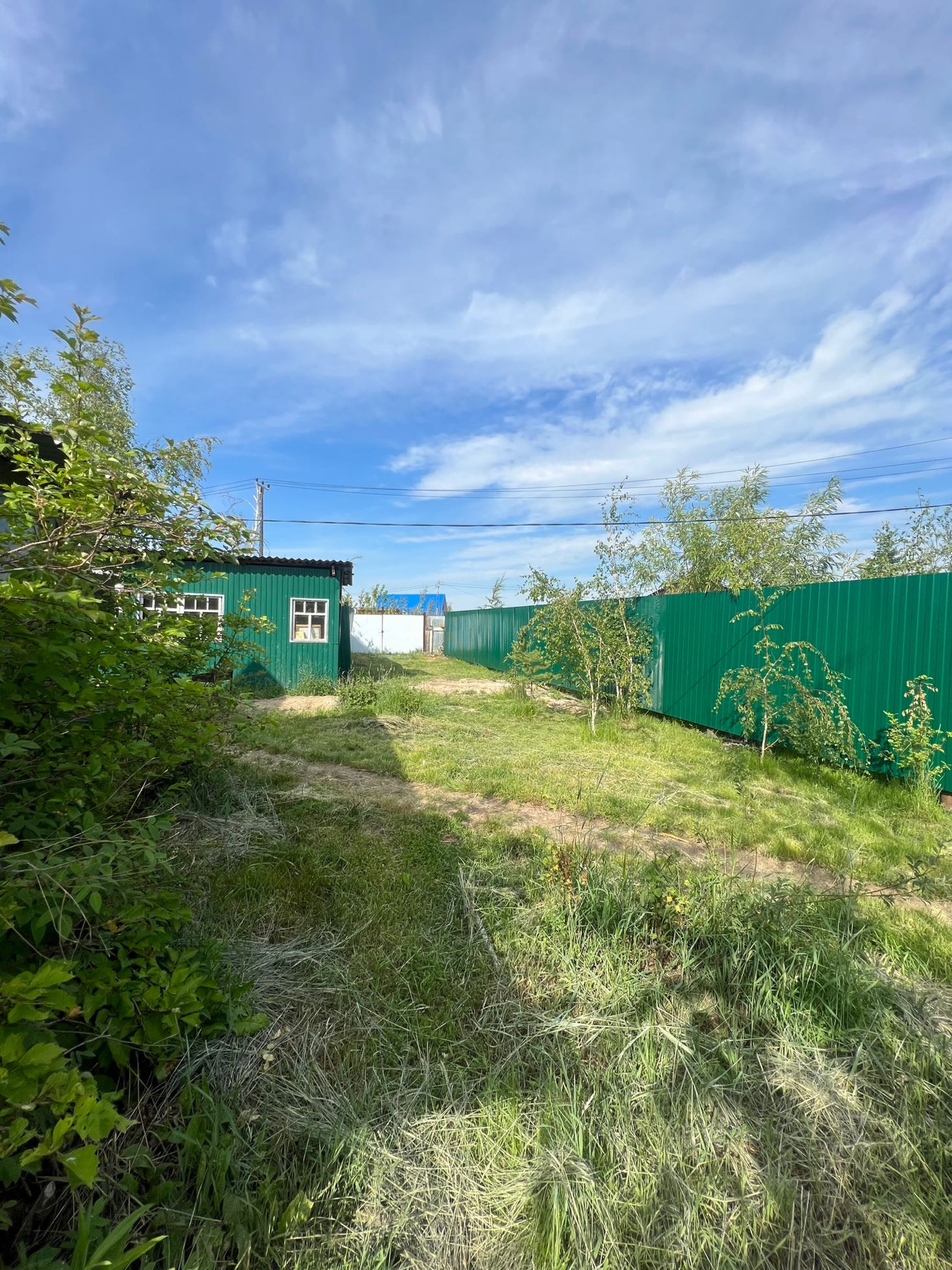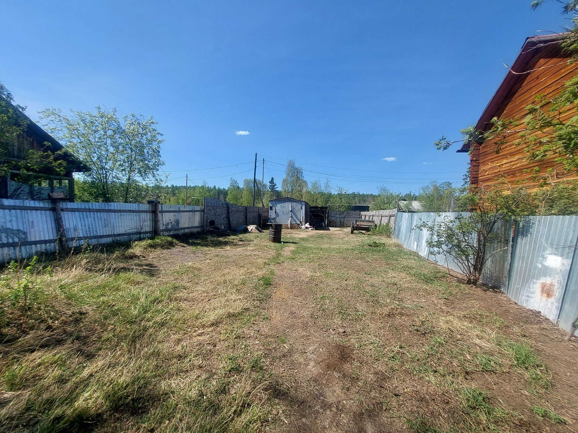 На участке электричество, у ворот вывод газопровода (ТУ готово), два подъездных пути, летние беседка и кухня.