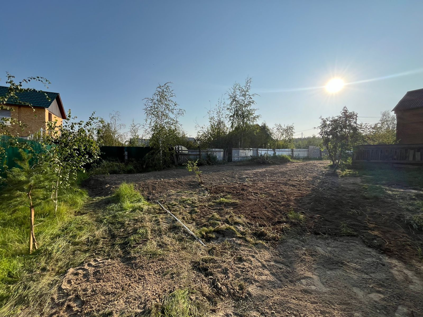 7 соток, хорошая почва под огород, 2 разных въезда прямо на участок с воротами.