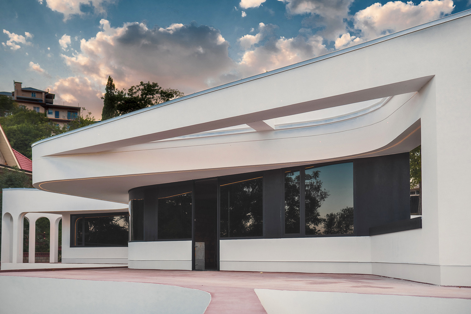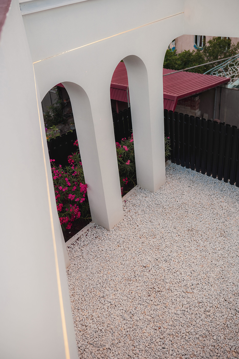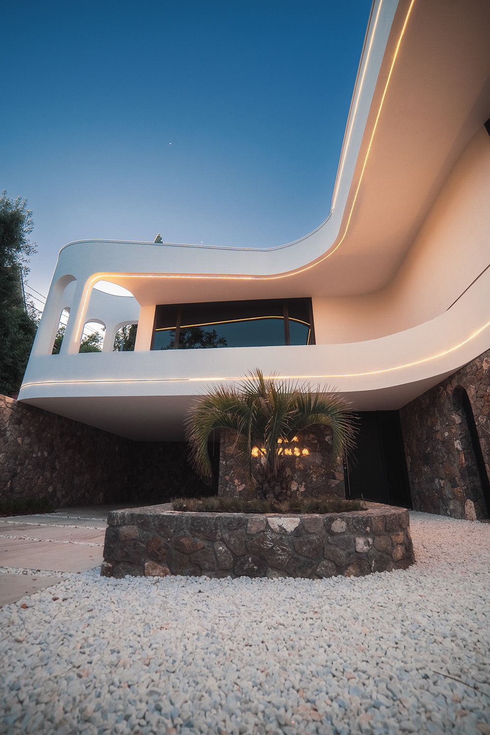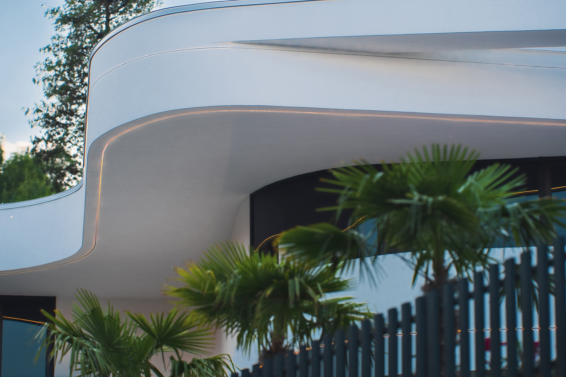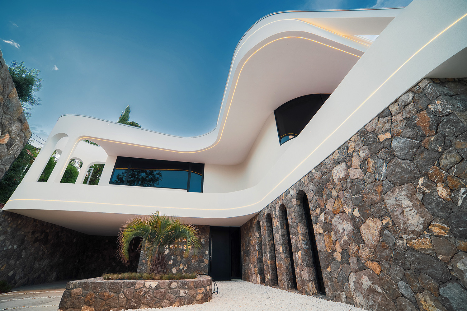 Вилла представляет собой 440 кв.м., 290 кв.м. внутренняя площадь, 2 этажа и эксплуатируемая крыша. Расположена так, чтобы на территории создавался уют и уединение.