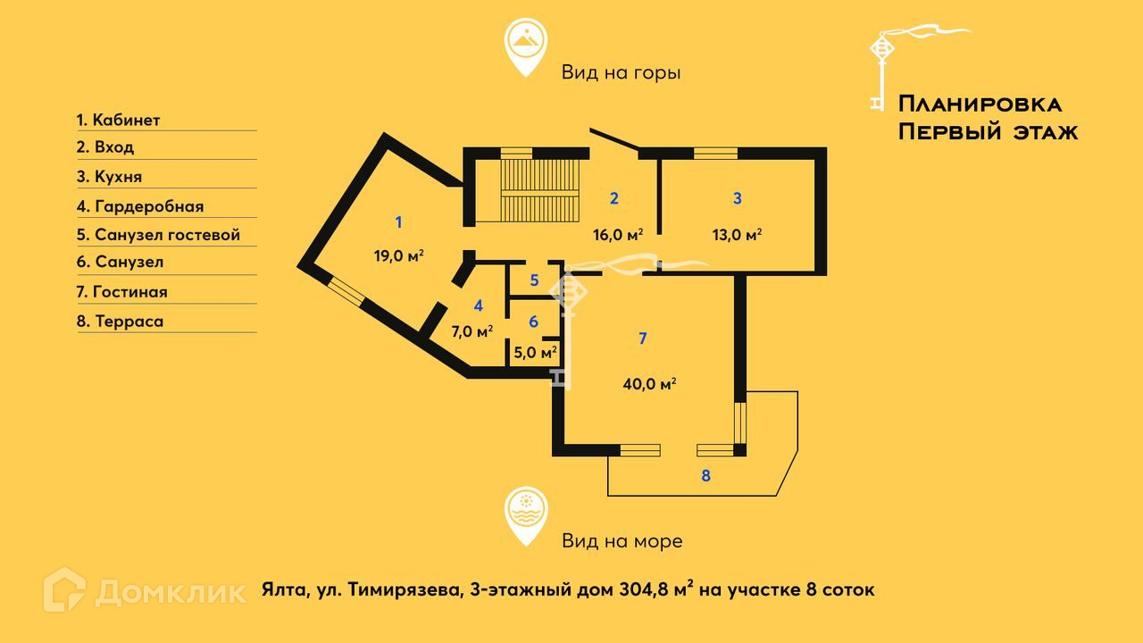 Дом расположен в спокойном районе Ялты с развитой инфраструктурой, рядом: