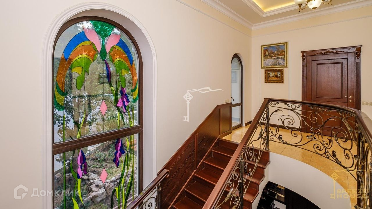 -холл лестницы украшает витражное окно со вторым светом,