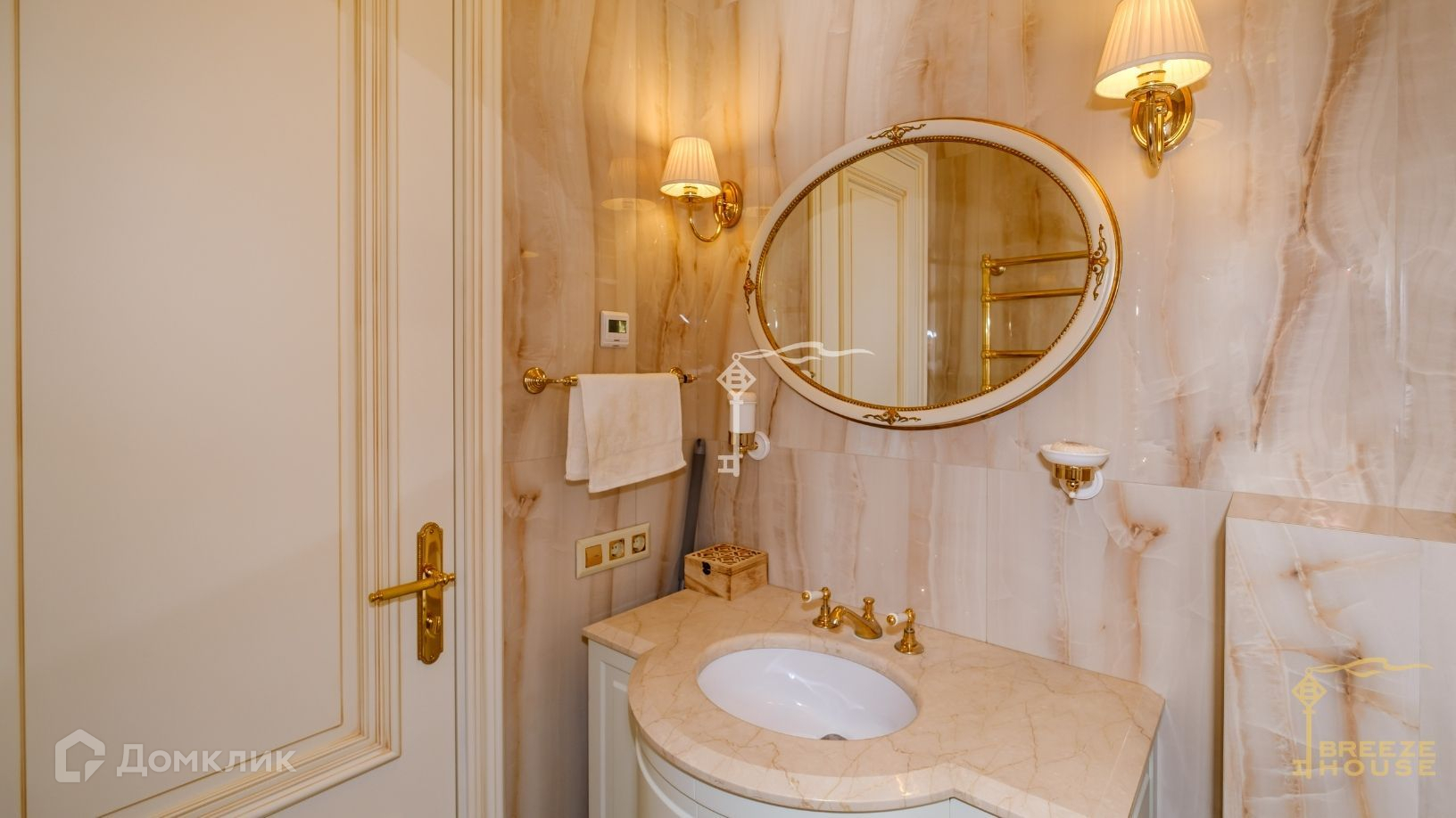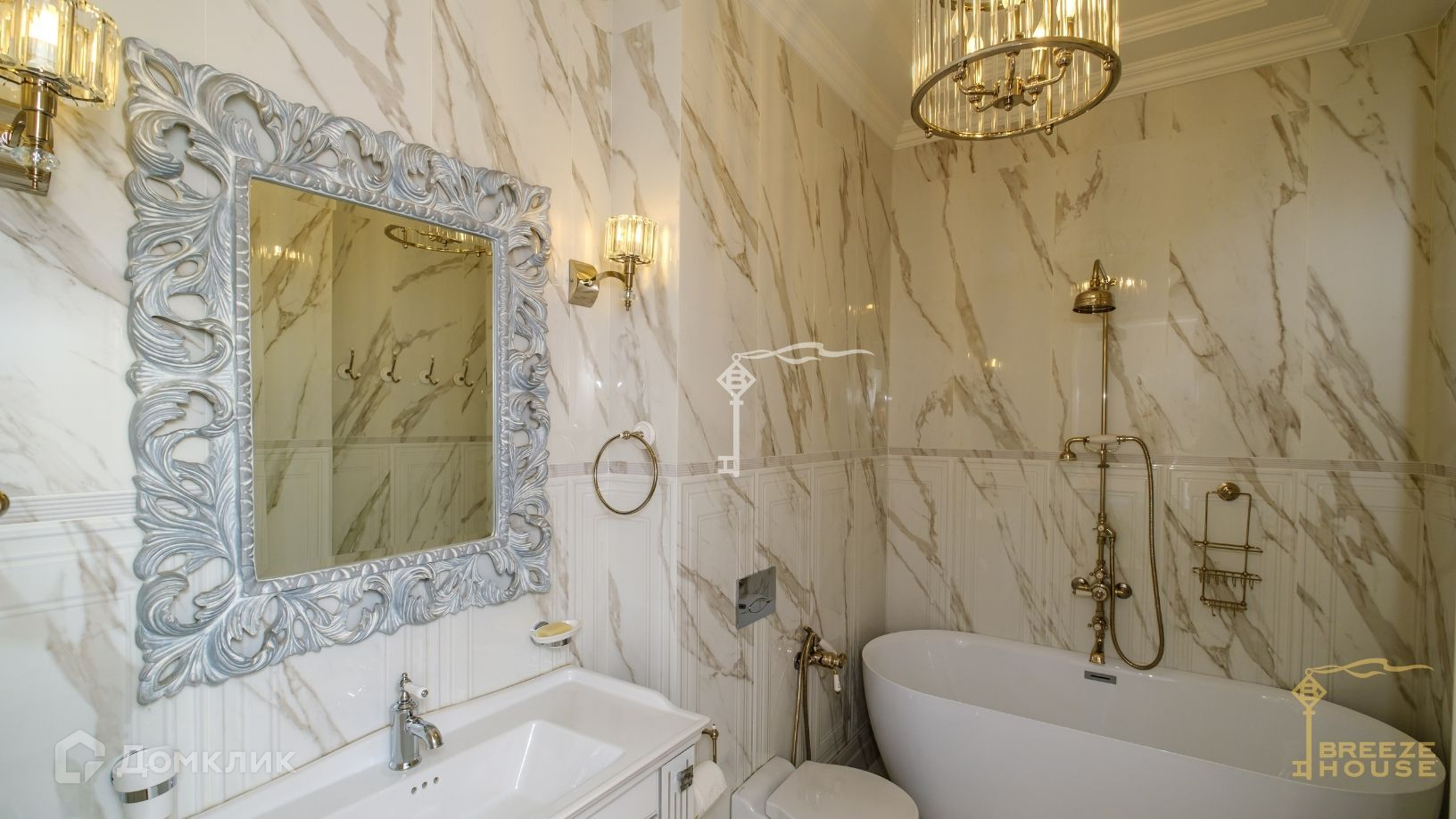 В декоре виллы использован мрамор, на полу - итальянский керамогранит и паркетная доска из ореха, кованные перила по индивидуальному заказу, светильники и бра подобранные в едином стиле повторяющие цветовое решение лестничных перил. Дом полностью укомплектован эксклюзивной бытовой техникой и итальянской мебелью: