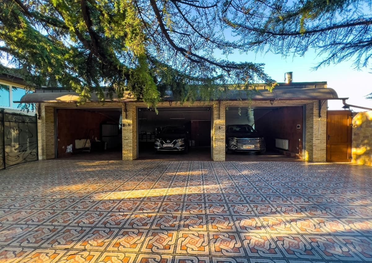 На территории расположены просторный закрытый гараж на три машины, а также , отдельностоящий большой крытый бокс для катера.