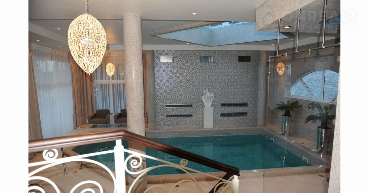Планировка: прихожая, огромный зал, кухня-столовая, 4 спальни,  кабинет, 7 с/у , дополнительная рабочая кухня, панорамный лифт,  4 огромных террасы, крытый бассейн с прозрачным куполом, финская сауна, турецкий хаммам, созданный руками турецких специалистов.
