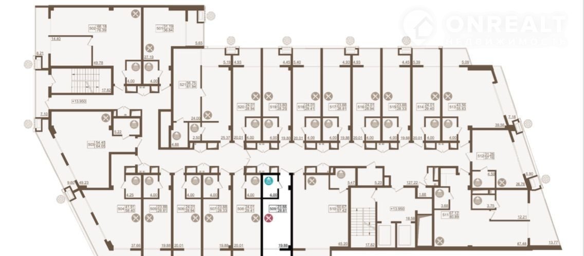515 апартаментов, 4 корпуса, 8 этажей.