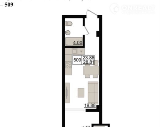 Общая площадь 29.6 м2