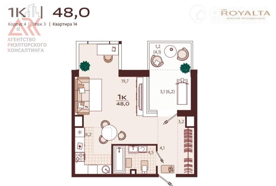 Общая площадь 48 м2