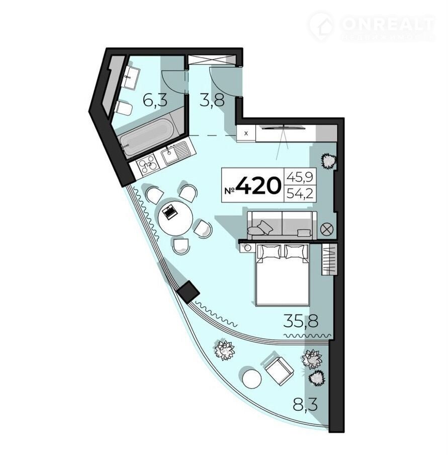 Общая площадь 54.2 м2