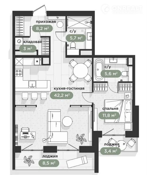 Балкон, лоджия 1 лоджия