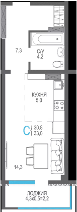 Общая площадь 33 м2