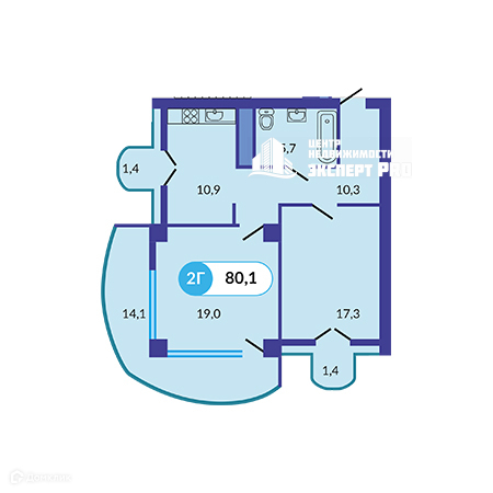 Общая площадь 80.1 м2