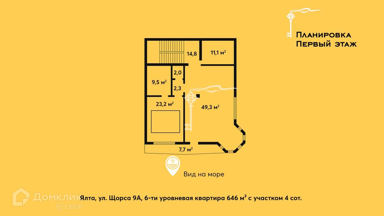 -Общая площадь 646 м²;