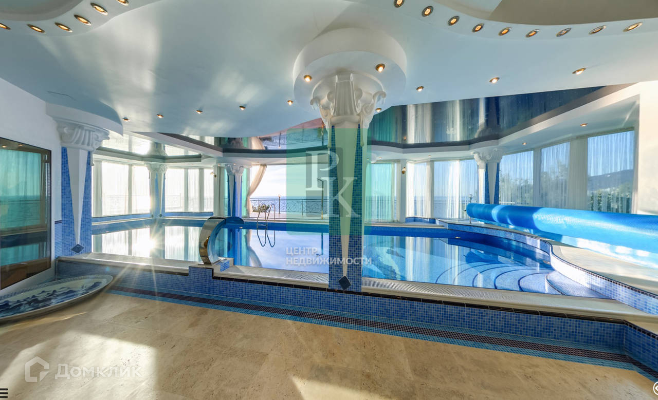 Основной дом имеет 4 жилых этажа с 11-тью спальнями, SPA-комплекс, тренажёрный зал, зимний сад. Для удобства перемещения установлен лифт. Из каждой спальни открывается восхитительный вид на море, горы и Ялту.