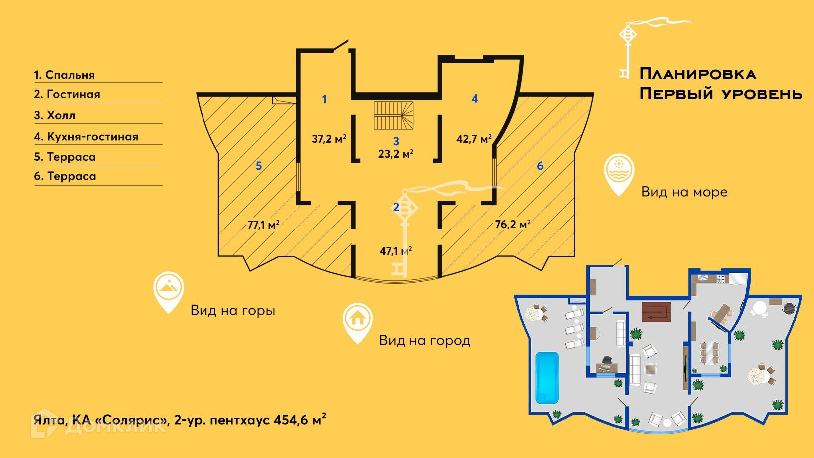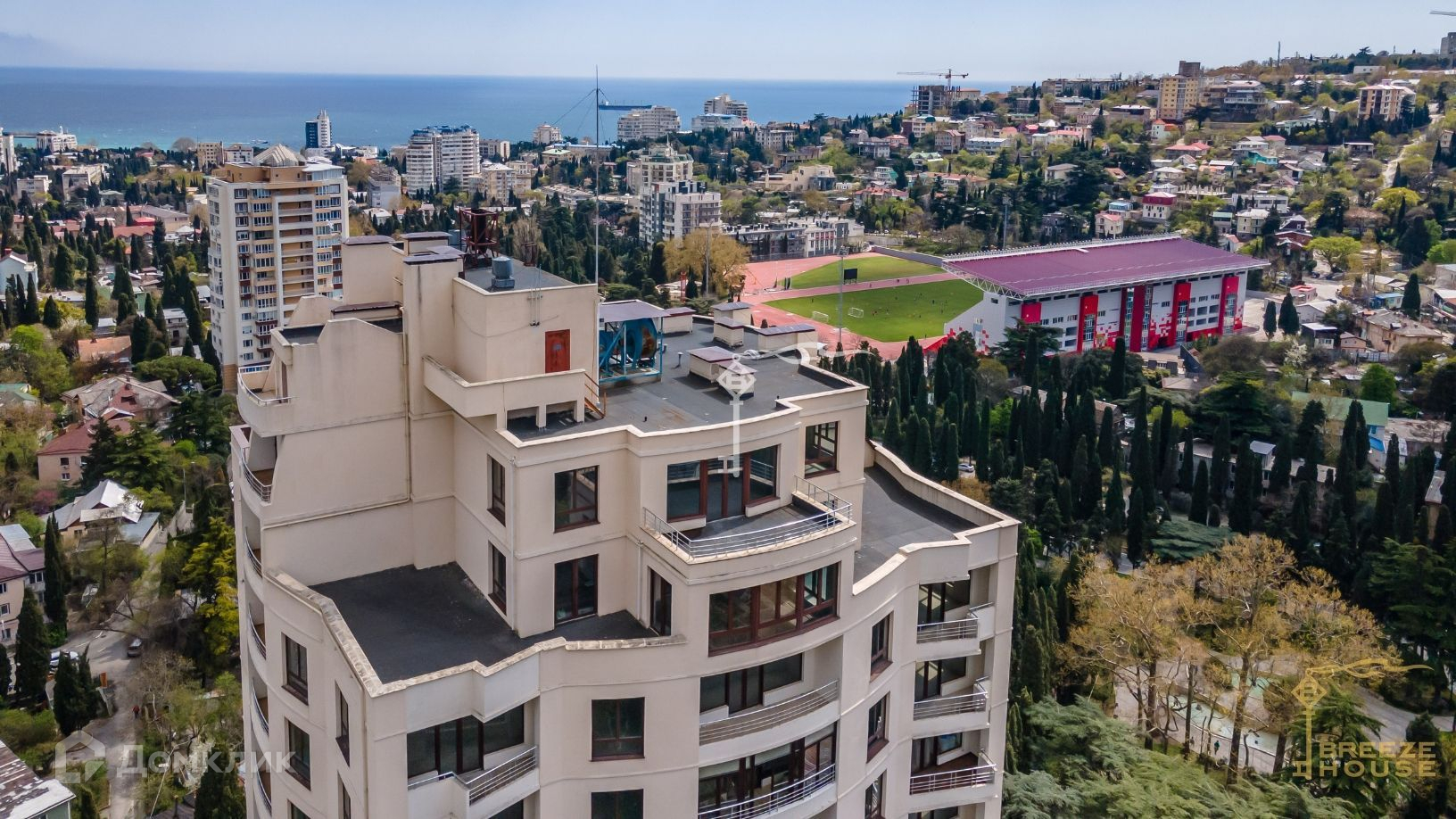 Продажа двухуровневого пентхауса с видами на горы, город, и море расположенного на 17 и 18 этажах престижного комплекса апартаментов «Солярис» с собственным парком и бассейном прямо в центре Ялты.