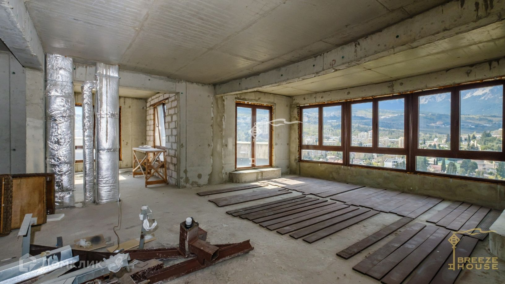 Состояние - под отделку. По документам статус - апартаменты. Можно разделить на два 2-ур. пентхауса, пишите, пришлем планировку.