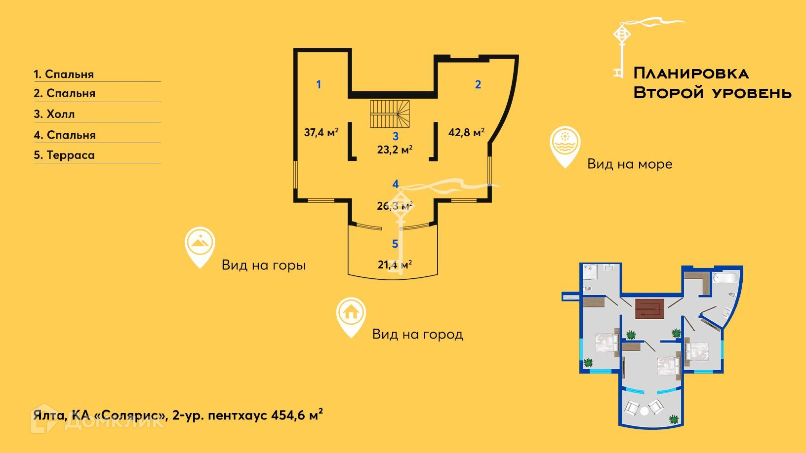 Этот пентхаус поистине уникален, что делает его одним из самых редких форматов жилья на рынке Ялты.