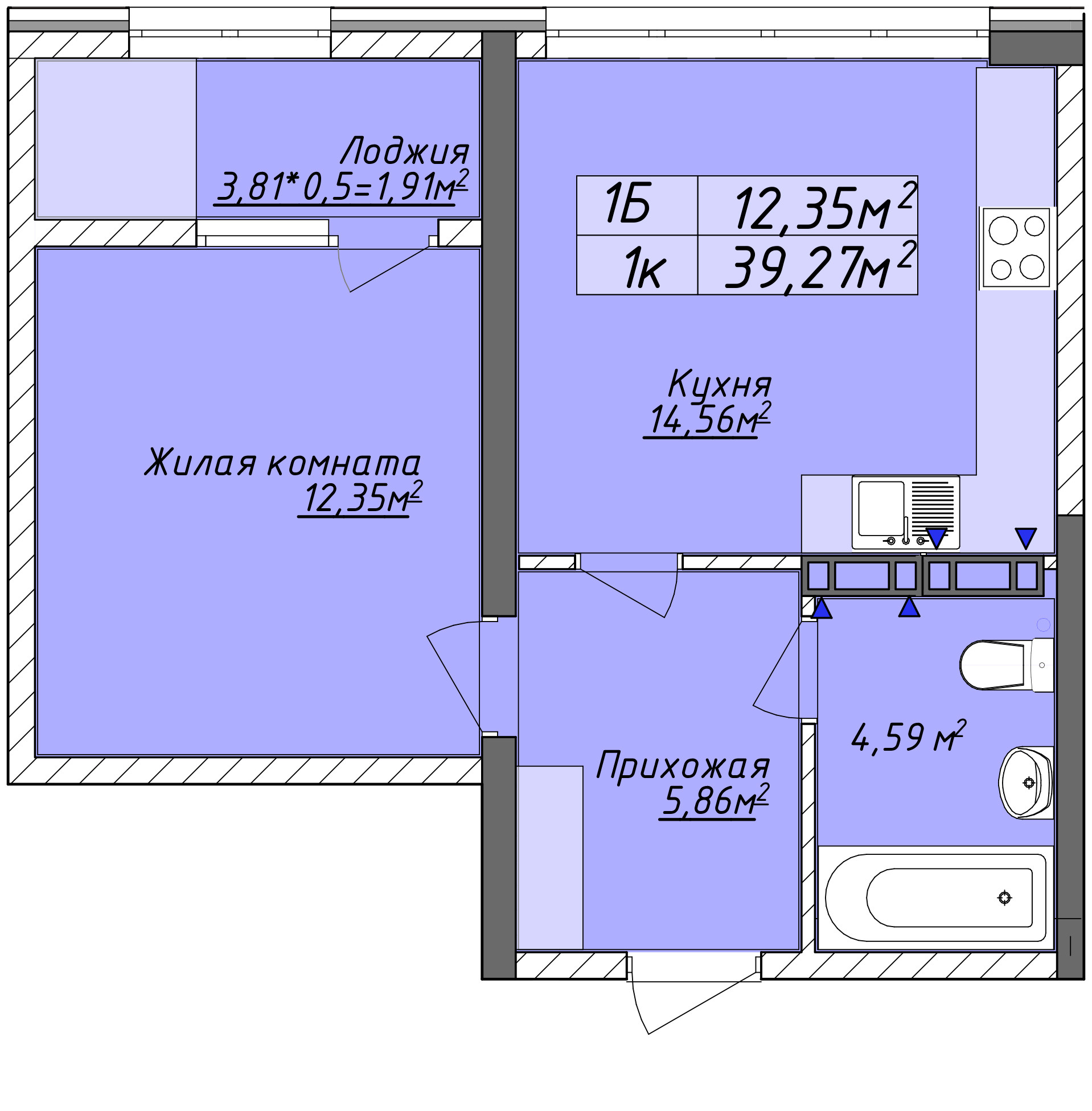 Общая площадь 39.27 м2