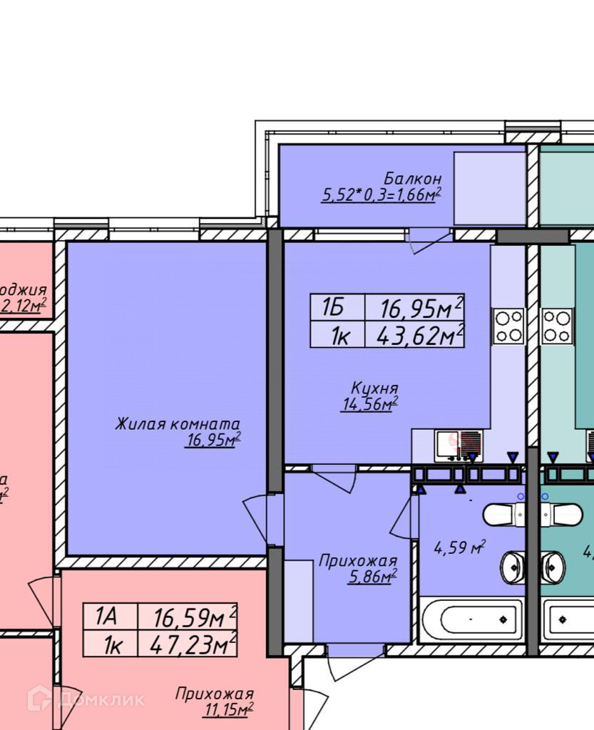 Общая площадь 47.23 м2