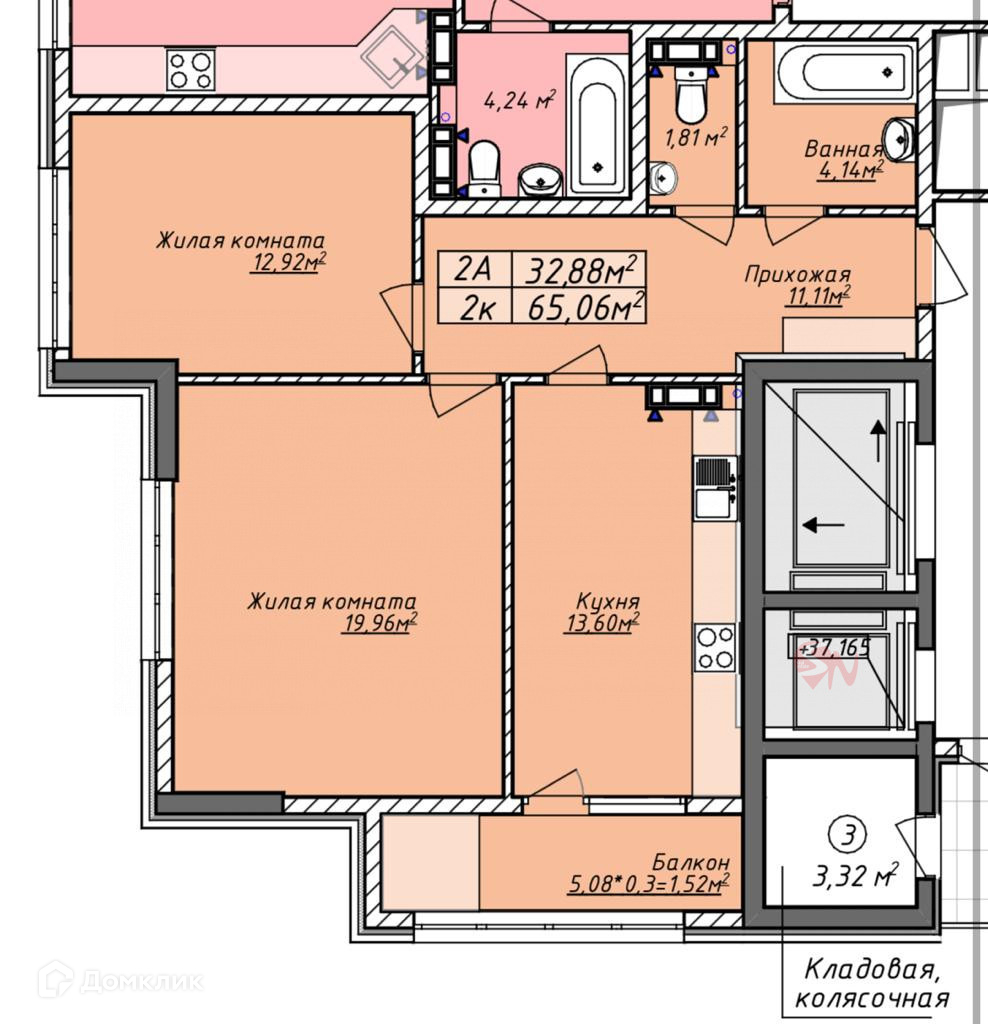 Общая площадь 65.06 м2