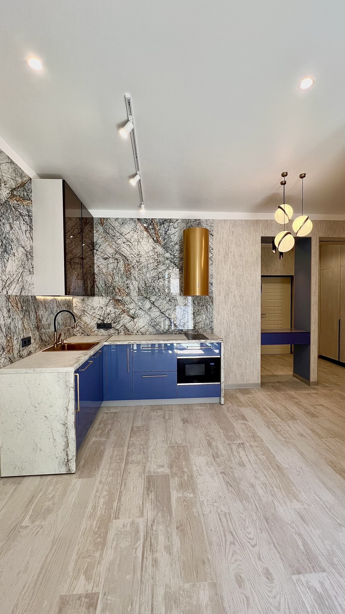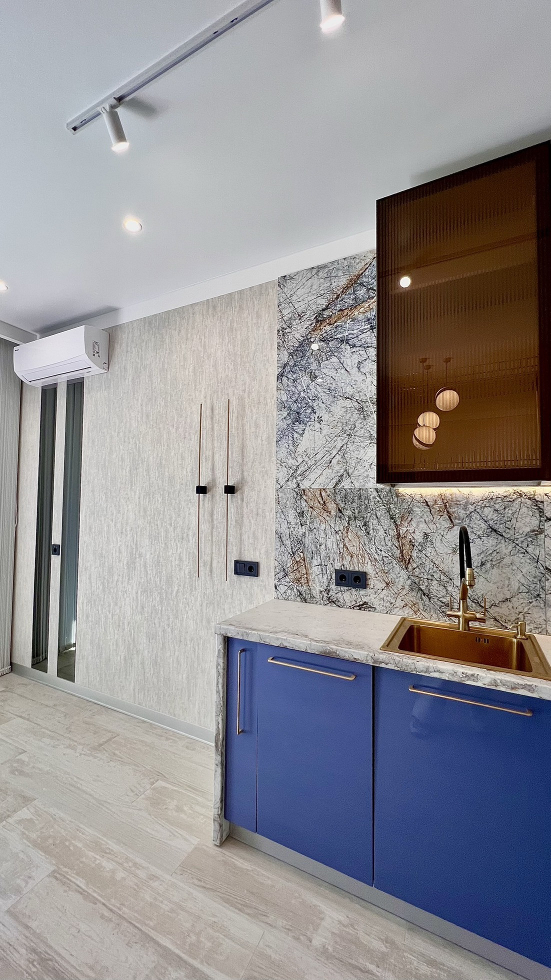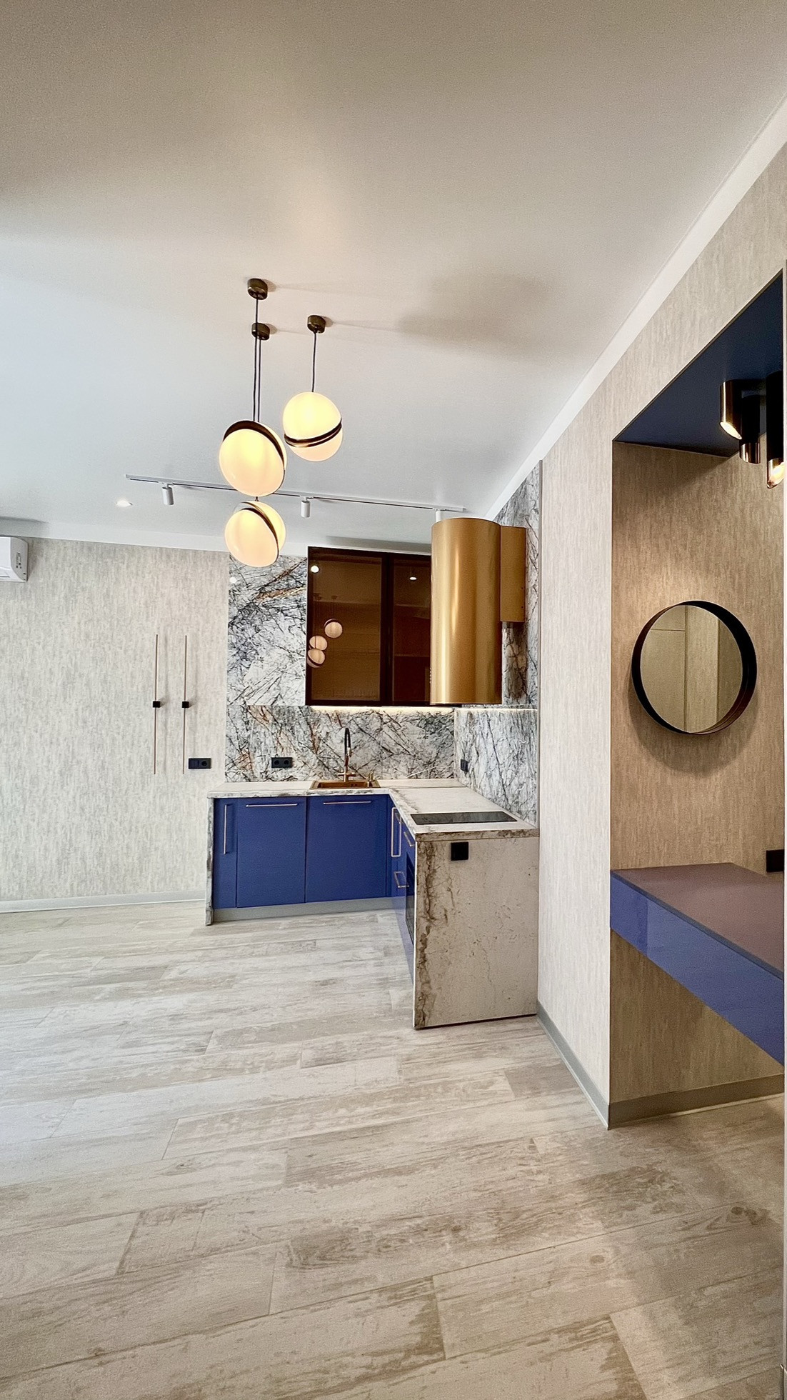 Апартаменты с дизайнерским ремонтом полностью оборудованы встроенной техникой. Установлены кондиционеры, разведен теплый пол. Кухня укомплектована всей необходимой техникой: посудомоечная машина, индукционная плита, микроволновая печь.