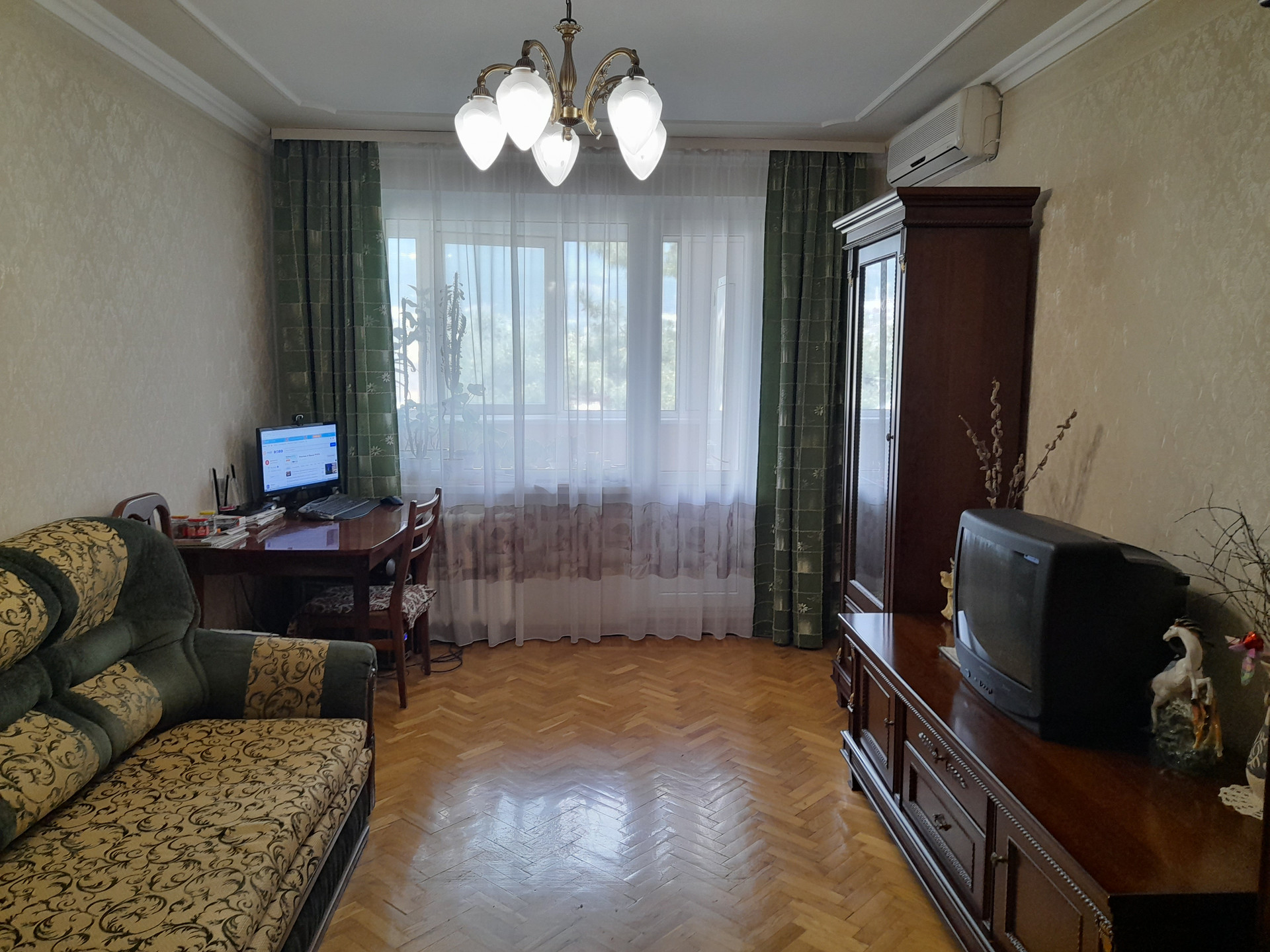 3-х комнатная квартира с ремонтом. Все комнаты изолированные, 3 лоджии. На большую лоджию выход из кухни и большой комнаты. Из каждой маленькой комнаты выход на отдельную маленькую лоджию. Санузел раздельный. Комната - 17,2м кв. и две комнаты по 11,2м кв.,каждая. Большая лоджия - 8м. кв. Две маленькие лоджии 3,4м кв., каждая. Коридор 7,5м. кв. Гардеробная 1,5м. кв. Кухня 6м. кв. В комнатах натуральный паркет, деревянные межкомнатные двери. Лоджии обшиты деревянной рейкой, покрыты лаком, Все окна стеклопакеты. В прихожей и кухне на полу плитка. Кухня, ванная, туалет облицованы плиткой. Кондиционер.