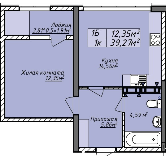 Общая площадь 41.17 м2