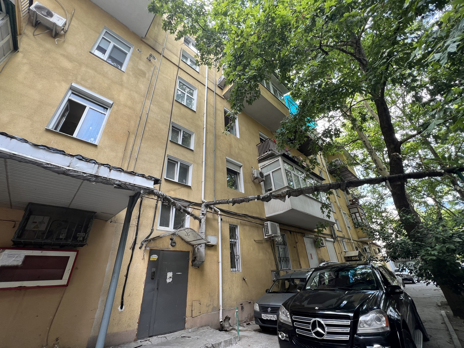 Продаётся просторная трёхкомнатная квартира площадью 80.4 квадратных метров на пятом этаже пятиэтажного кирпичного дома, расположенного по адресу: Республика Крым, Ялта, Московская улица, 11. Дом был построен в 1958 году и обладает уютной атмосферой сталинской эпохи.
