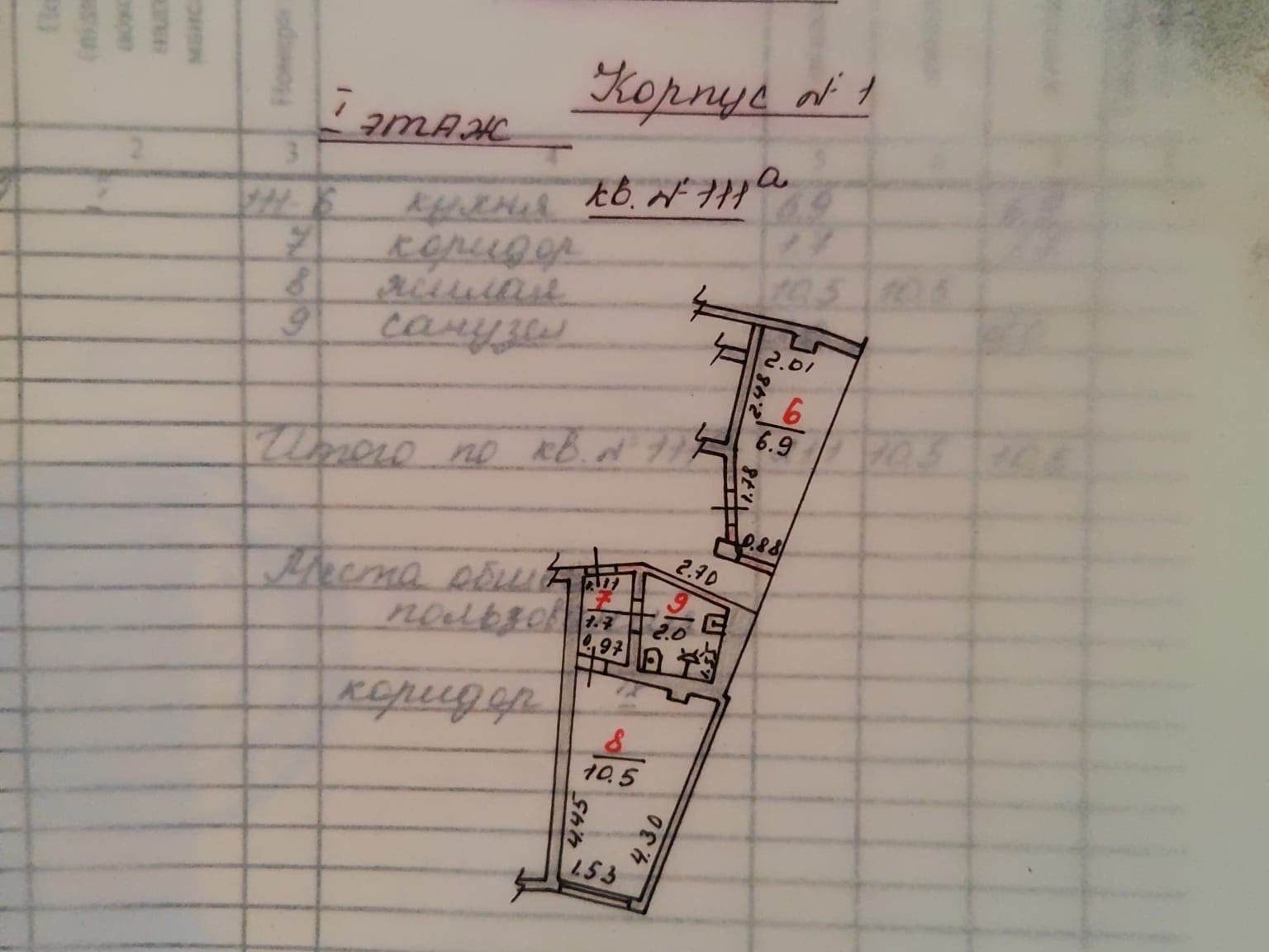 Жилая площадь 10.5 м2