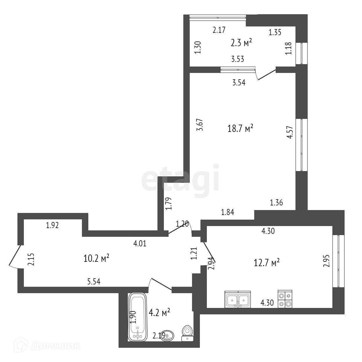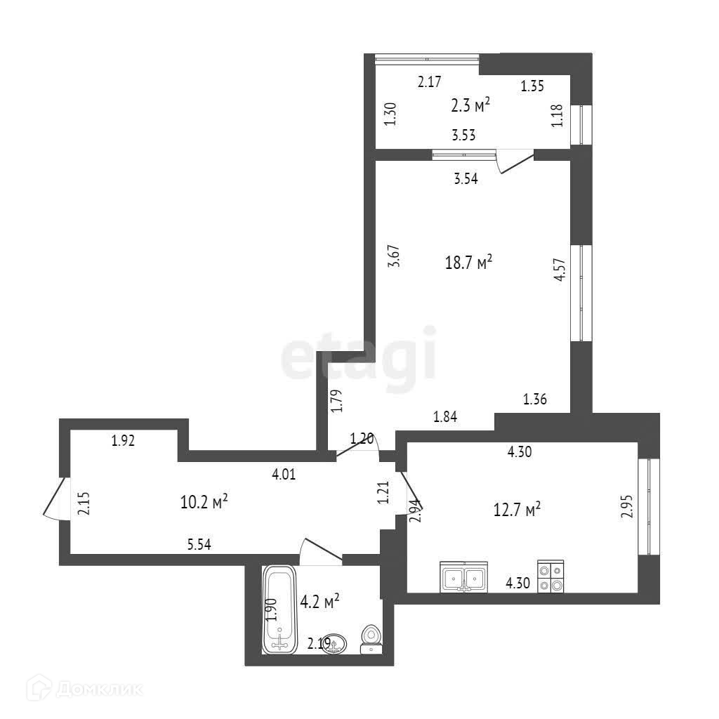 Совмещенный санузел - 4,2м2