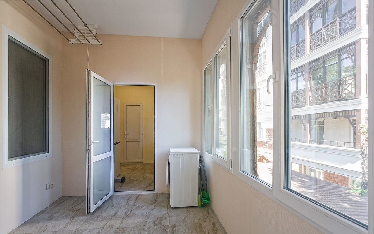 Если "безопасность" - ваше второе имя, то это квартира вашей мечты: здесь не страшны ни пожары, ни наводнения, ни даже землетрясения (дом дореволюционный, пережил землетрясение 1927го года, уничтожившее 70% Ялты). Стены - бутовый камень толщиной до 65 см; пол по всей квартире - керамогранит. Бонусом - четверть подвала (~30 м2).