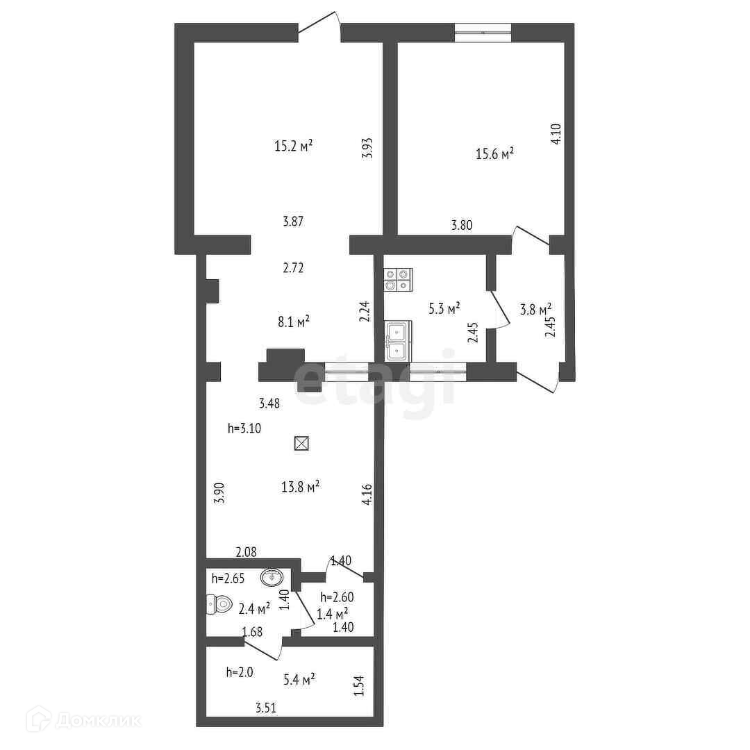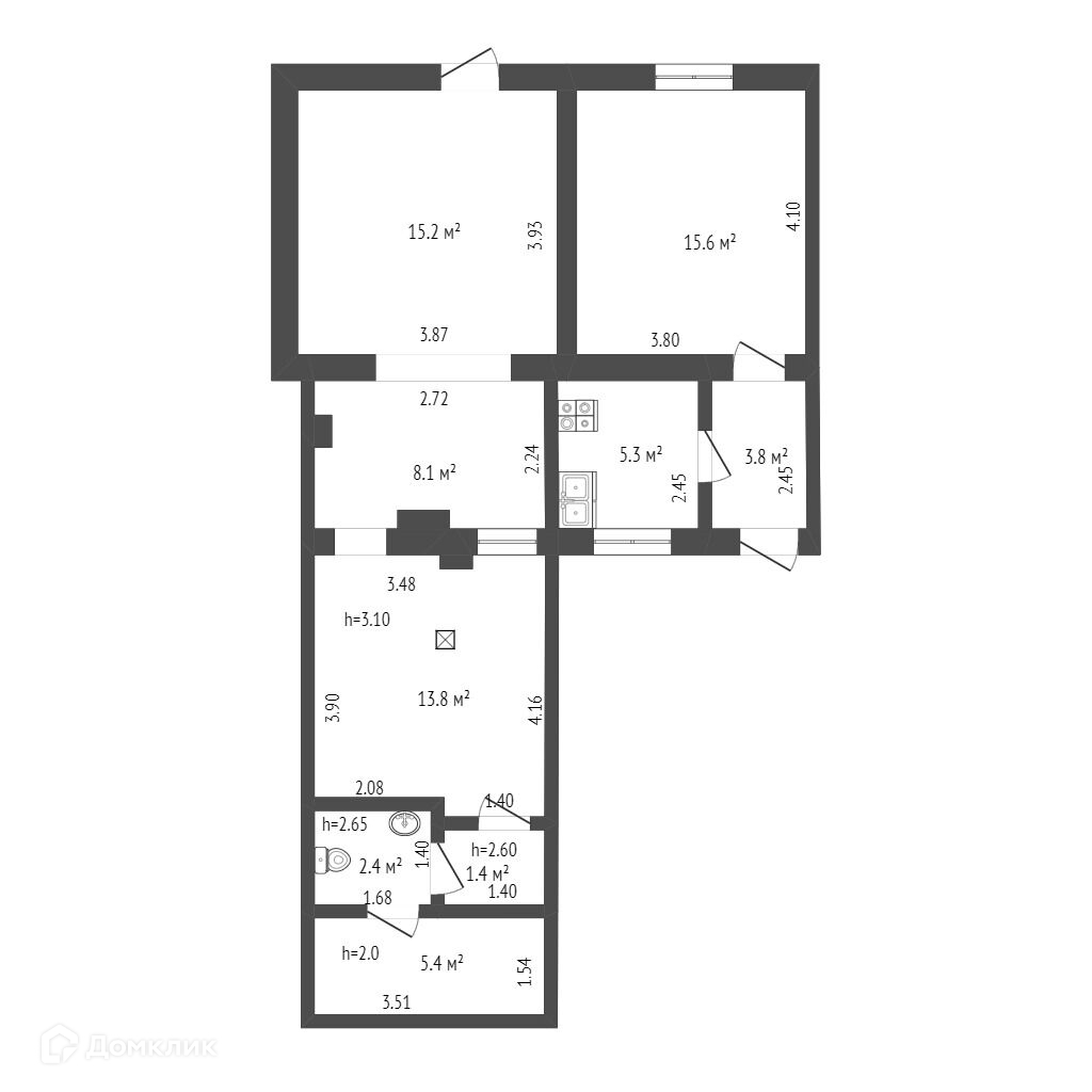 Общая площадь 46.3 м2