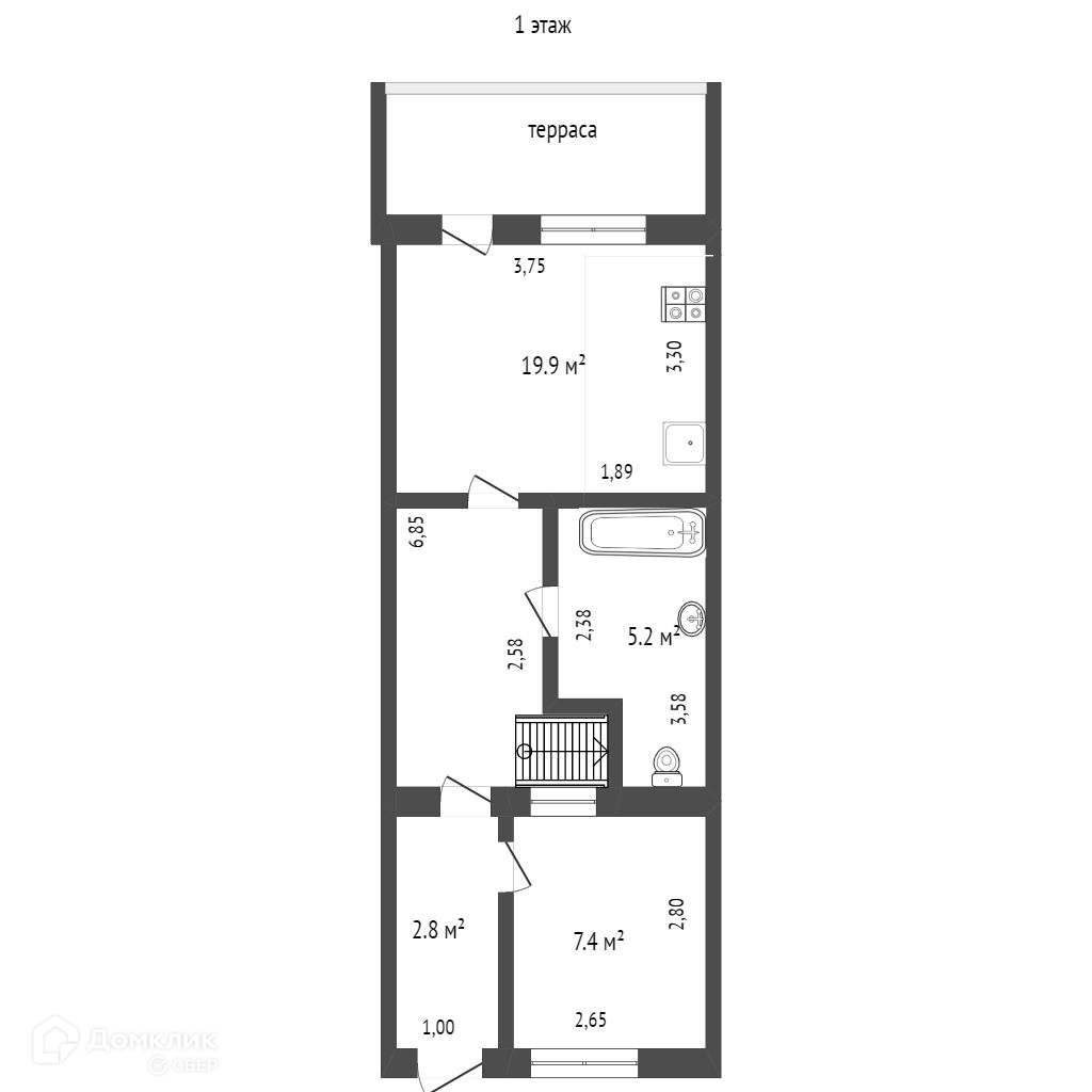 Имеется видовая терраса с видом на город и лес, на которой отлично расположится зона отдыха, столик или качели.